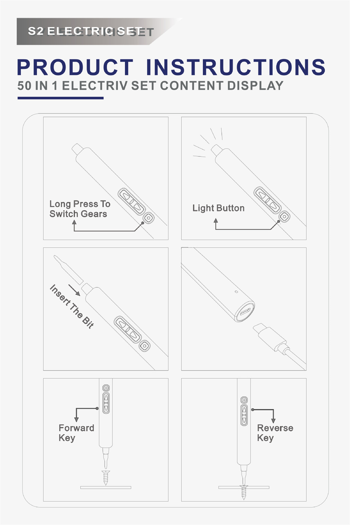 • 50-in-1 Mini Portable Electric Screwdriver Set 0.35 Nm Torque 200 r/min High-Speed Compact Design Rechargeable Lithium Battery for Electronics Repair and DIY