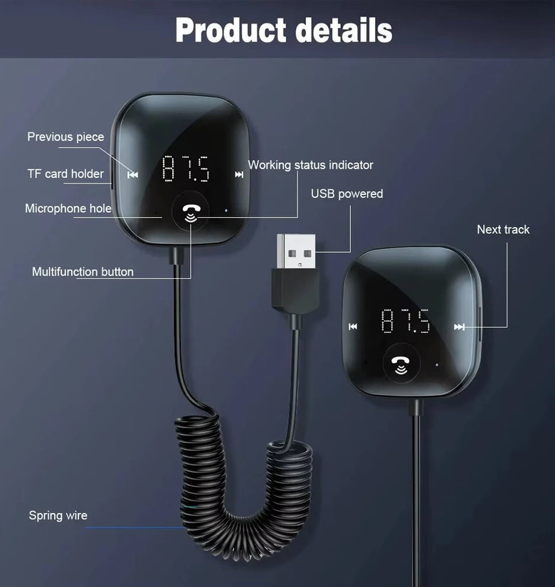 - Power Efficient: This device supports a 5V/0.1A USB power supply, ensuring that it operates efficiently without draining your vehicle’s battery. The spring wire supports USB 5V100MA power supply, making it adaptable to various power configurations.