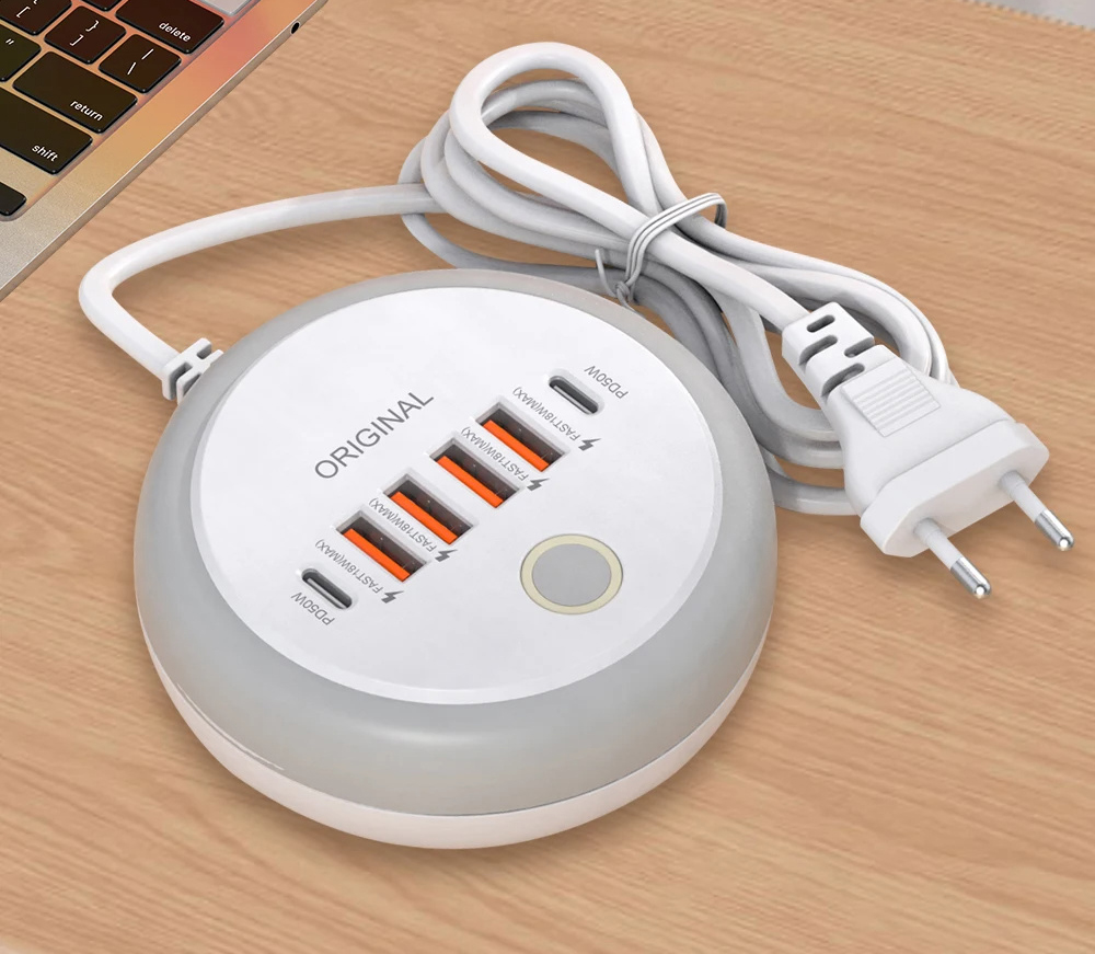 • 50W 6-Port USB PD Charger 4USB-A+2USB-C PD Fast Charging Power Strip with Touch Light EU Plug US Plug for iPhone 16 16Pro 15 14 13 Pro Max for Samsung Galaxy Z Flip6 for Xiaomi 15pro for Huawei Mate XT