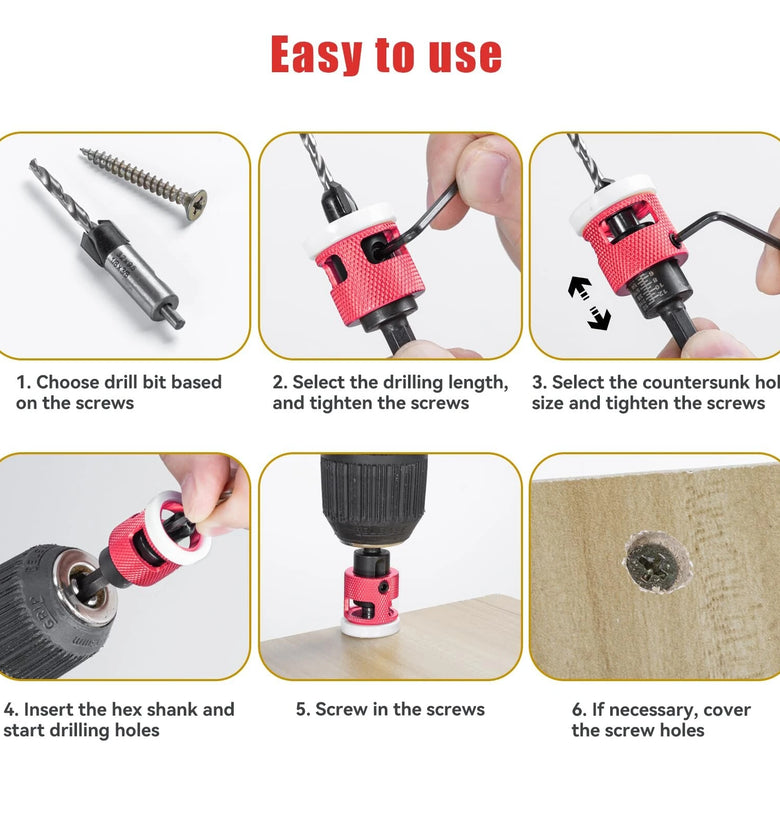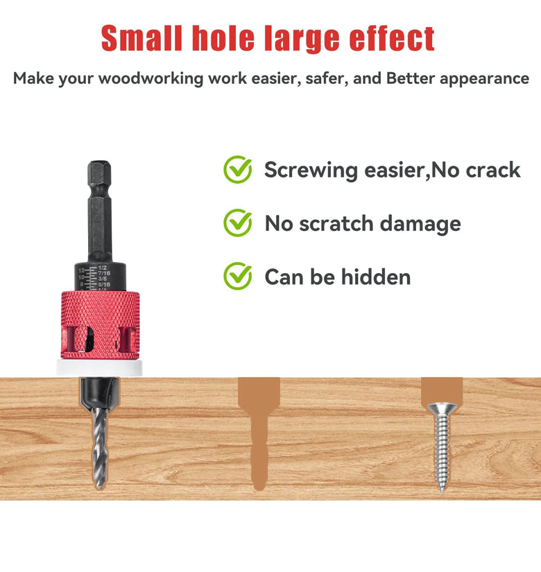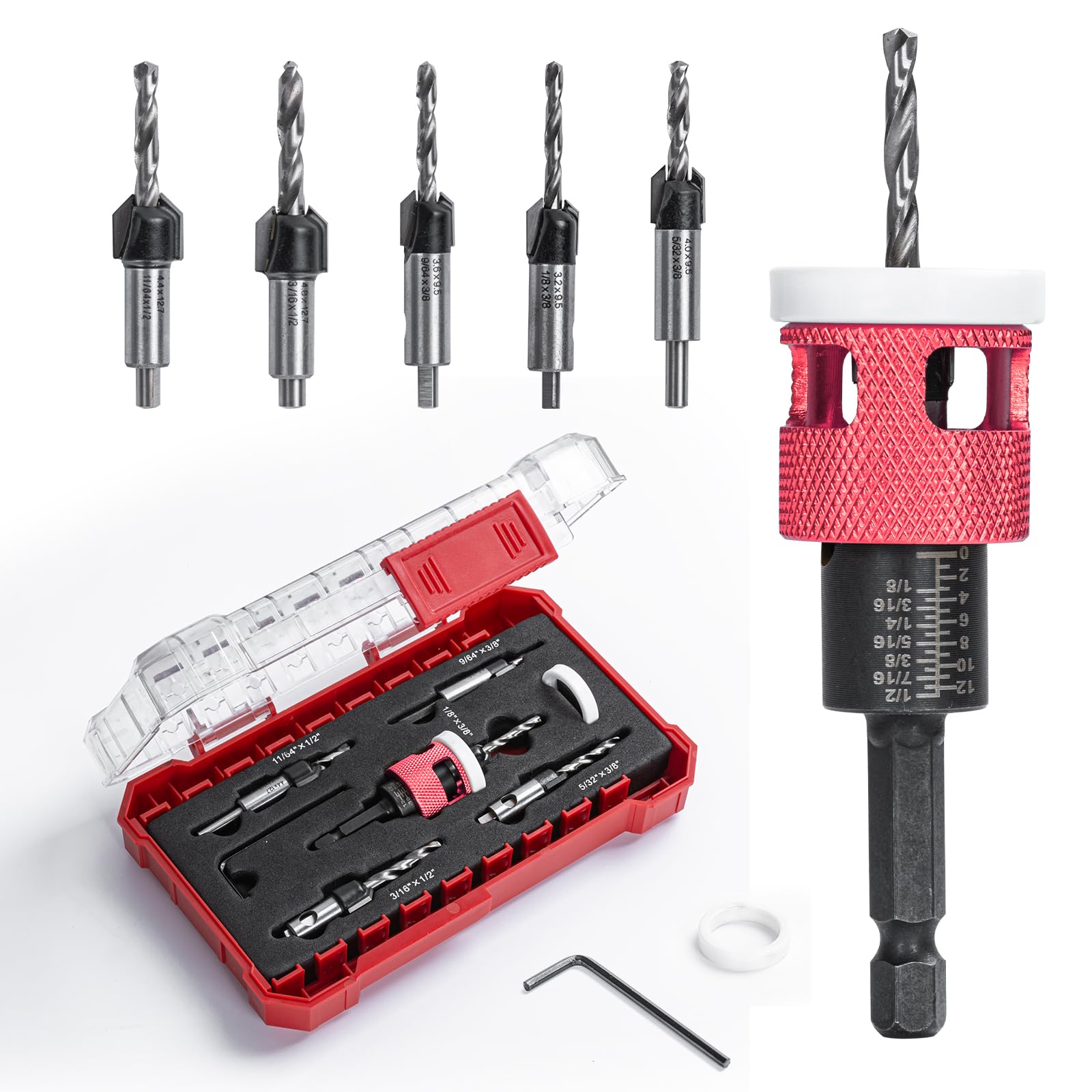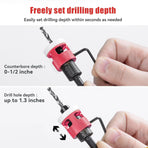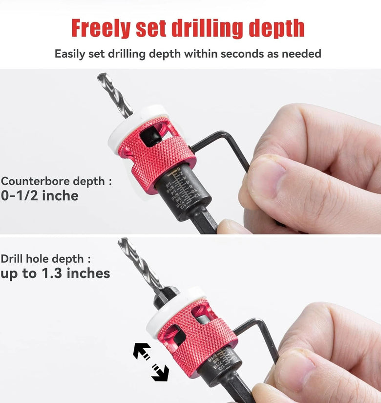 Adjustable Depth: Both the pilot drill and countersink depth can be adjusted with the included wrench, ensuring precise drilling. The added plastic collar effectively reduces surface wear.