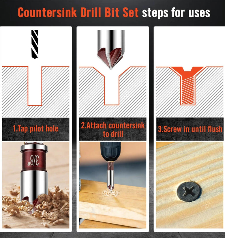 [Precision Craftsmanship] Fabricated from premium materials, our countersink drill bits exhibit sharp edges and robust structural integrity, minimizing cutting resistance and ensuring consistent, reliable performance for all your woodworking and craft projects.