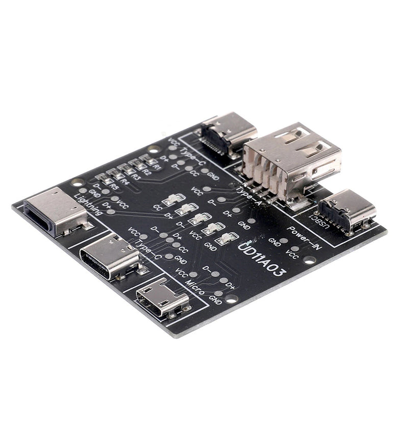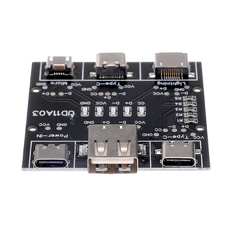 3. Type-c to Type-c data cable detection, CC, D+, D-, VCC, GND indicators are on. When testing other data cables, the CC indicator does not light up.