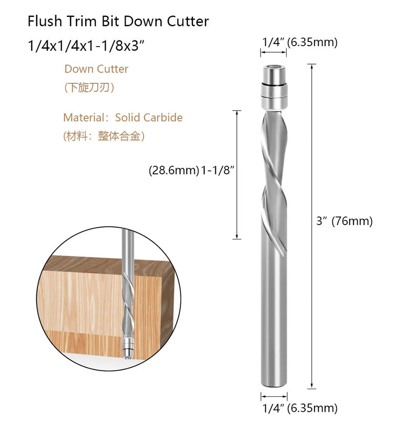 A#: 6.35*28.575*76.2 Flush Trim Bit Down Cutter