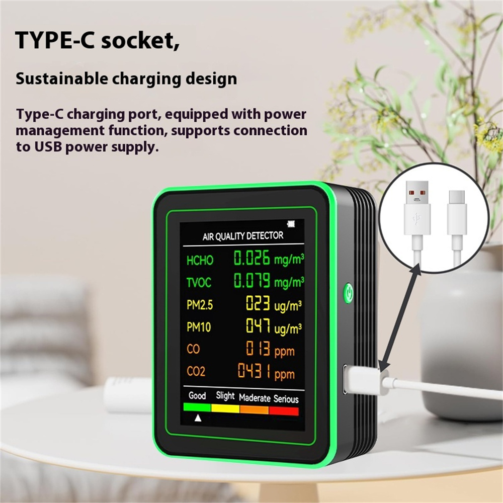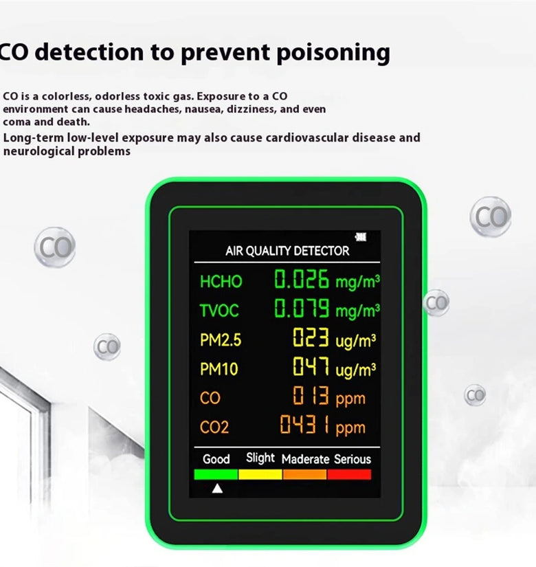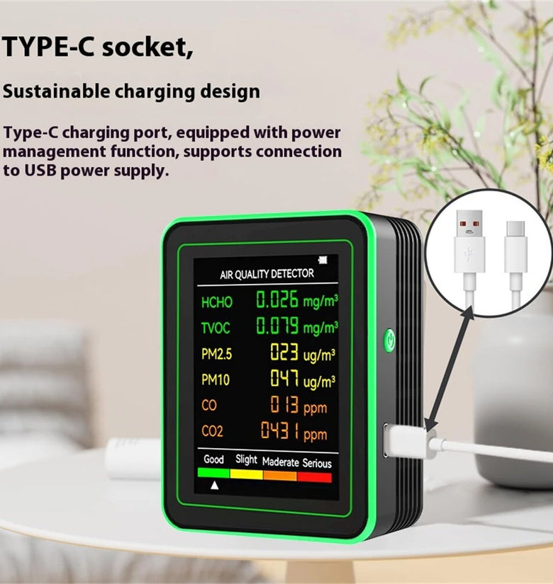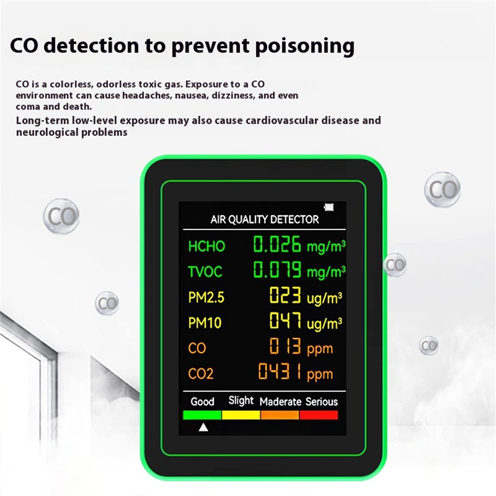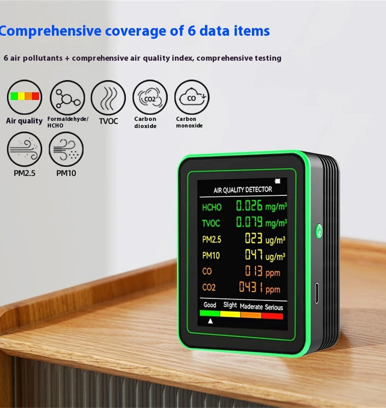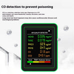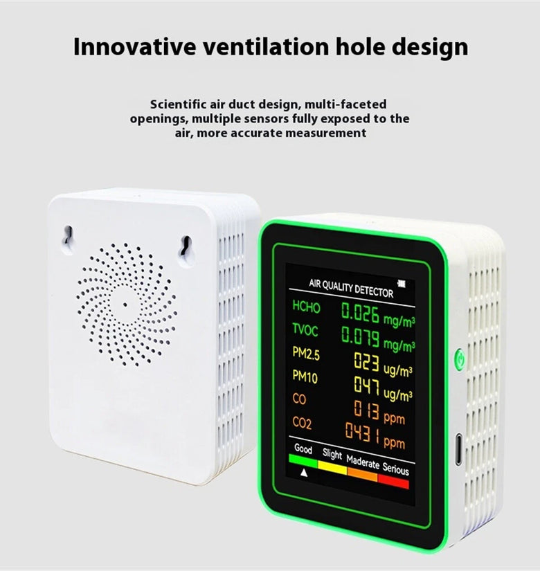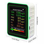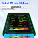 Multi-Sensor Test: Accurately measures HCHO, TVOC, PM2.5, PM10, CO, and CO2 levels to ensure comprehensive air quality assessment.