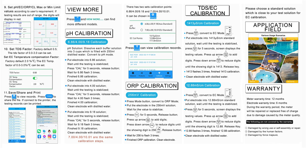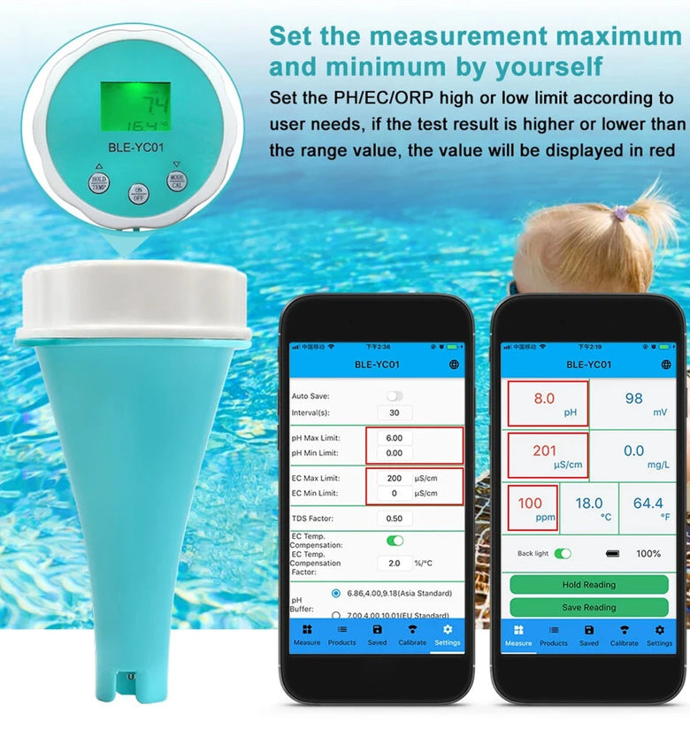 5) You can set a high or low PH/EC/ORP limit according to your needs, when the test results is above or below the range, the value will be displayed in red to alarm you.