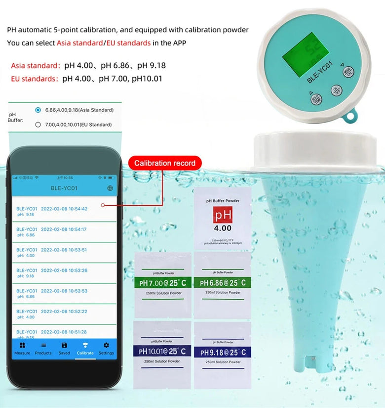 • 6 in1 Water Quality Detector PH EC TDS ORP CL Temperature Calibration Chlorine Water Tester APP Online Monitor for Swimming Pool