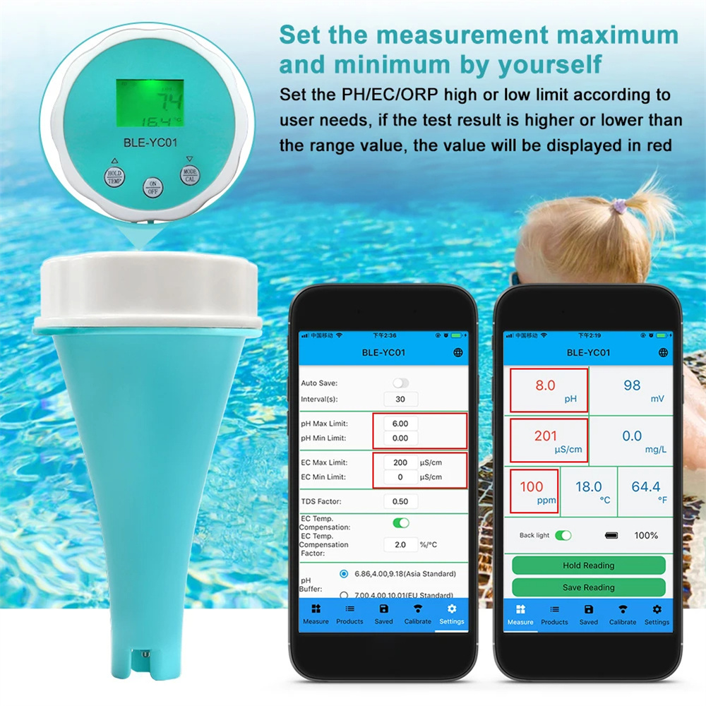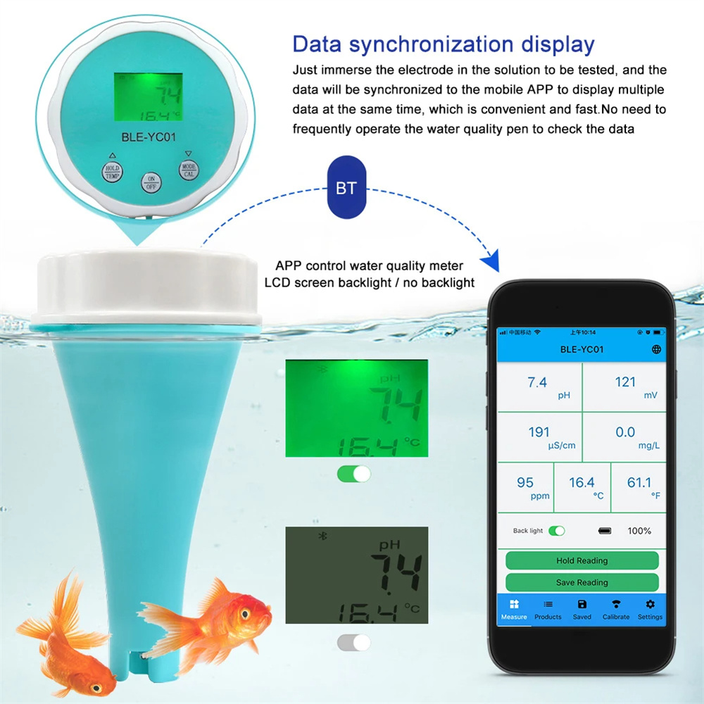 6 in1 Water Quality Detector PH EC TDS ORP CL Temperature Calibration Chlorine Water Tester APP Online Monitor for Swimming Pool