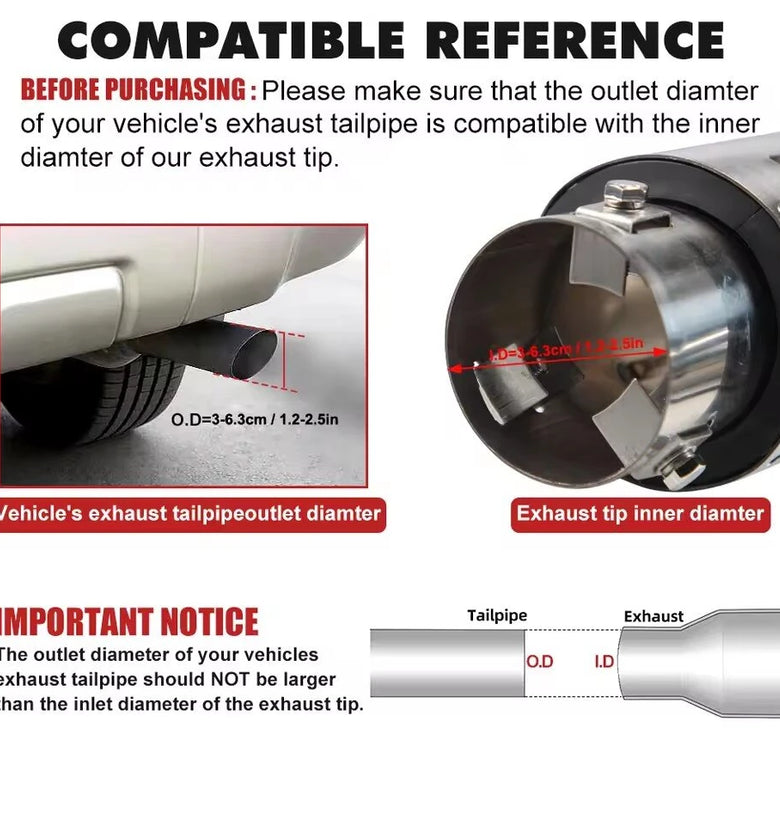 Compatibility: Fits 63mm / 2.5-inch original tailpipes