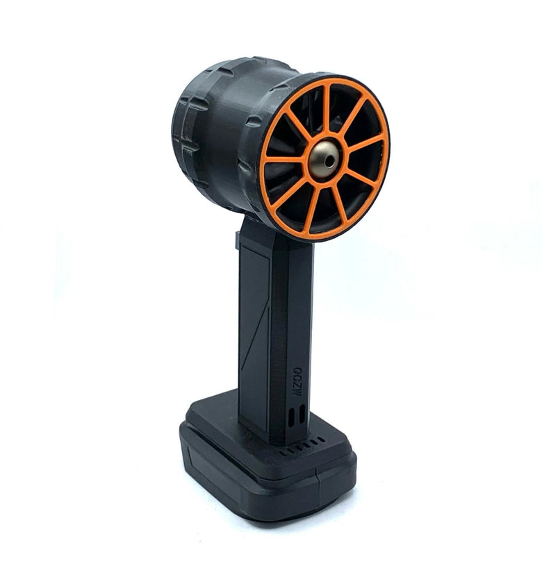 - Useing 64mm brushless motor, at 2200g Thrust.- Powered by Rechargeable Li-Ion Battery, Compatible with Dewalt/Makita/Milwaukee 18/21V Batteries(Battery Not included).- The entire casing is crafted through 3D printing using an exceptionally robust PETG & carbon fiber blend.- It will easily dry an entire vehicle within one charge cycle.- Ergonomic design, comfortable to hold- Press type speed regulation, use as desiredSpecifications:Motor: High Speed 50mm Brushless MotorThrust: 2200gProduct weight: about 340gSize: 230*86*80mmDuration: 15min to 20min at full power, continuous use.Current regulation: 60APower: 1100W maxOptional Battery Plug Type: For Dewal/For Mak/For Milwauke