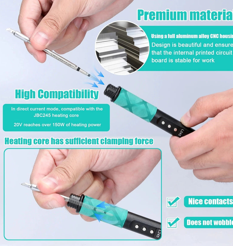 Heating core: L245 (customized); Compatible with JBC245 (DC mode is required, and the machine can only be started when the voltage is greater than 20V)