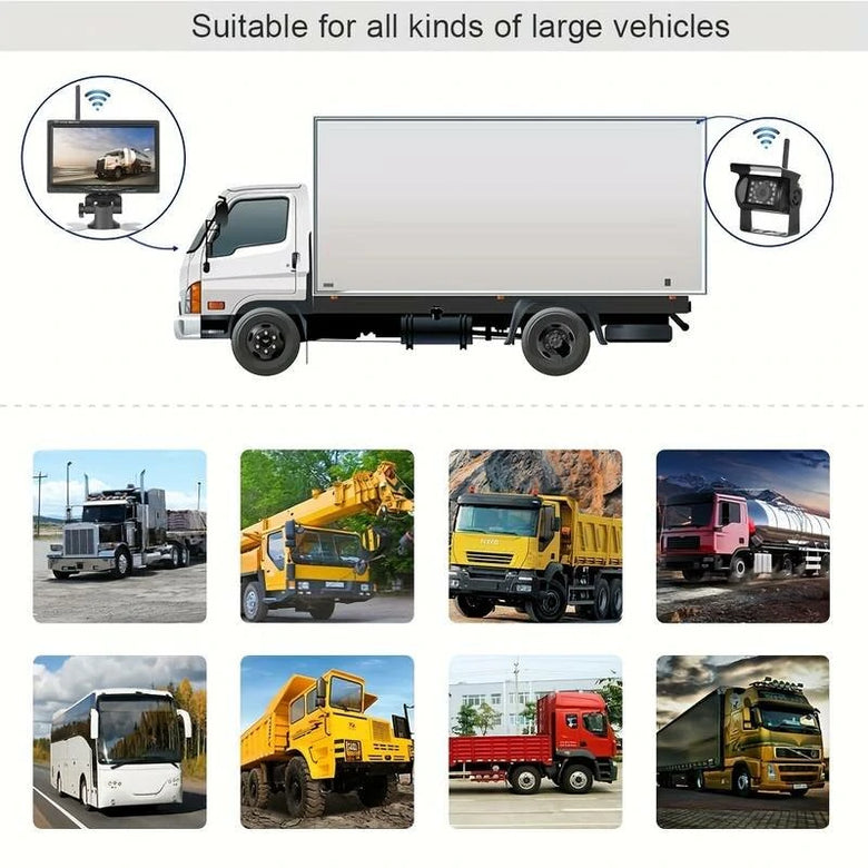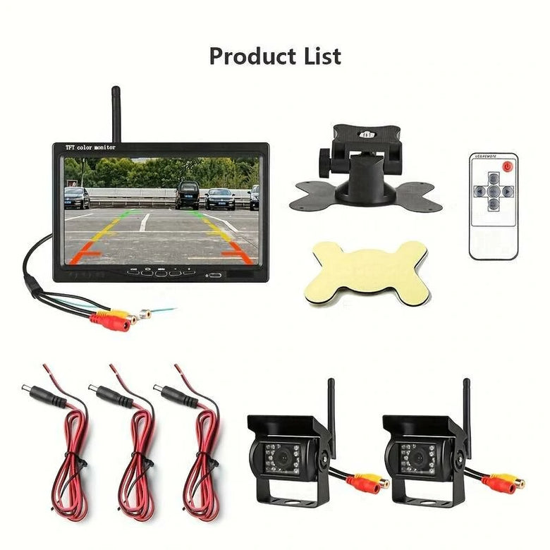 -- High-Definition Reversing Cameras: The package comes with two HD reversing cameras equipped with wireless transmitters, ensuring a hassle-free, wire-free setup. These cameras capture detailed visuals, ensuring users get a clear view of their surroundings when reversing or monitoring.