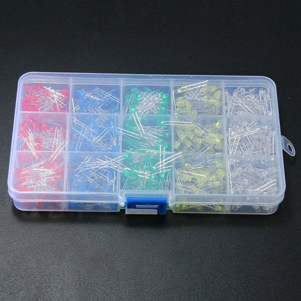• 750 Pcs 3mm LED Diode Yellow Red Blue Green White Assortment Light DIY Kit