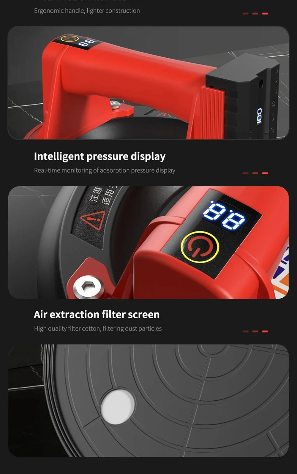 Sturdy and practicalmso-bidi-font-family:'Times New Roman';font-size:10.5000pt;mso-font-kerning:1.0000pt;'>: The suction plate can withstand extreme temperatures and has a dustproof filter cotton, enhancing its lifespan and reliability.mso-bidi-font-family:'Times New Roman';font-size:10.5000pt;mso-font-kerning:1.0000pt;'>