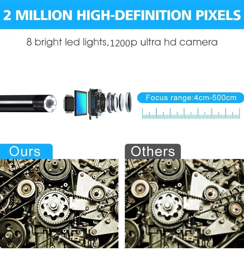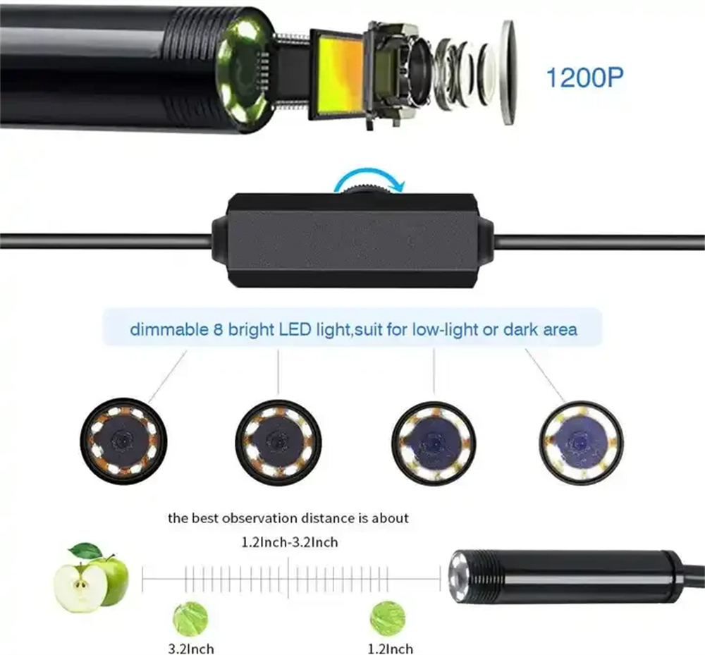 - High-Definition Camera: Capture crystal clear images at 1200P resolution, delivering highly detailed visuals even in complex repair or inspection scenarios.