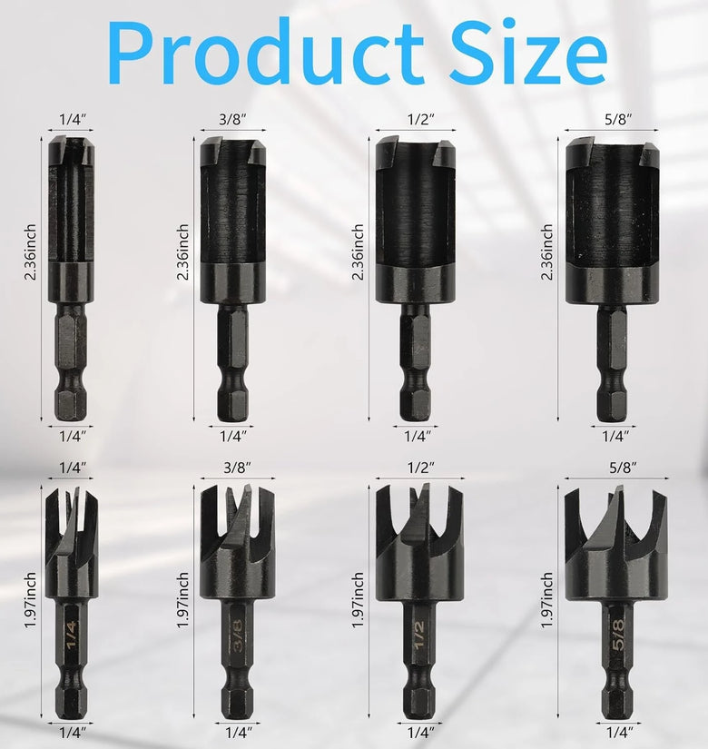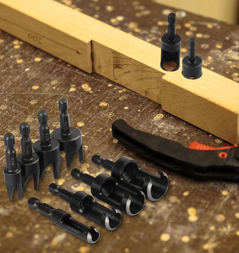 • 8pcs Wood Plug Cutter Drill Bit Set Cobalt Steel Plug Cutter Set Hex Shank Design 1/4 3/8 1/2 5/8 Inch Woodworking Tools High Precision Wear Resistant