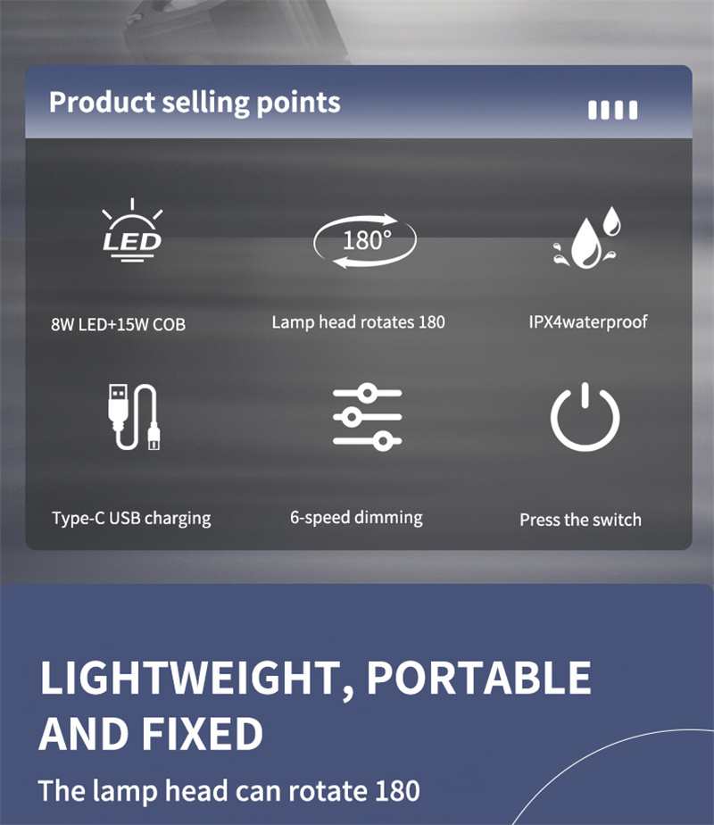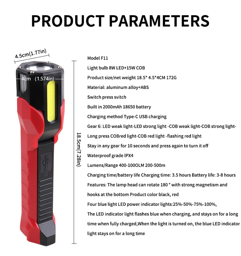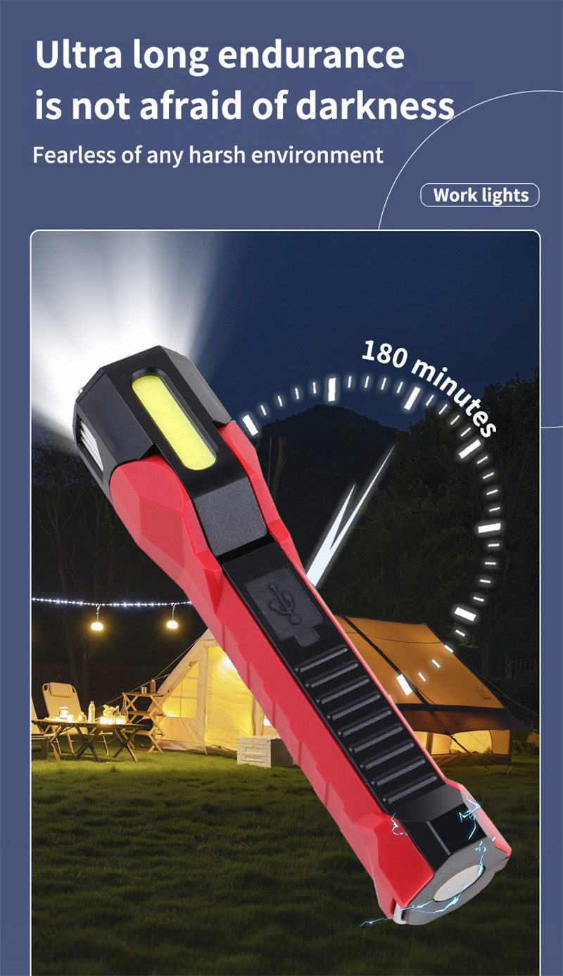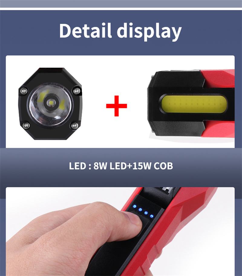 • 8W LED+15W COB 1000LM LED Work Light 500M Long Range Super Bright Flashlight Built-in 18650 battery Working Lamp