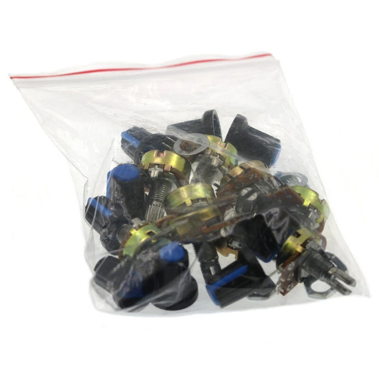 9Pcs/Set WH148 Potentiometer Resistor with Nuts and Potentiometer Button Cap Adjustable Knob for B1K/B2K/B5K/B10K/B20K/B50K