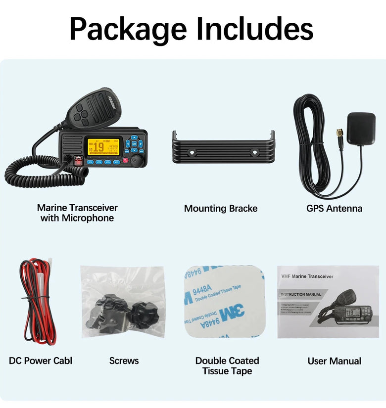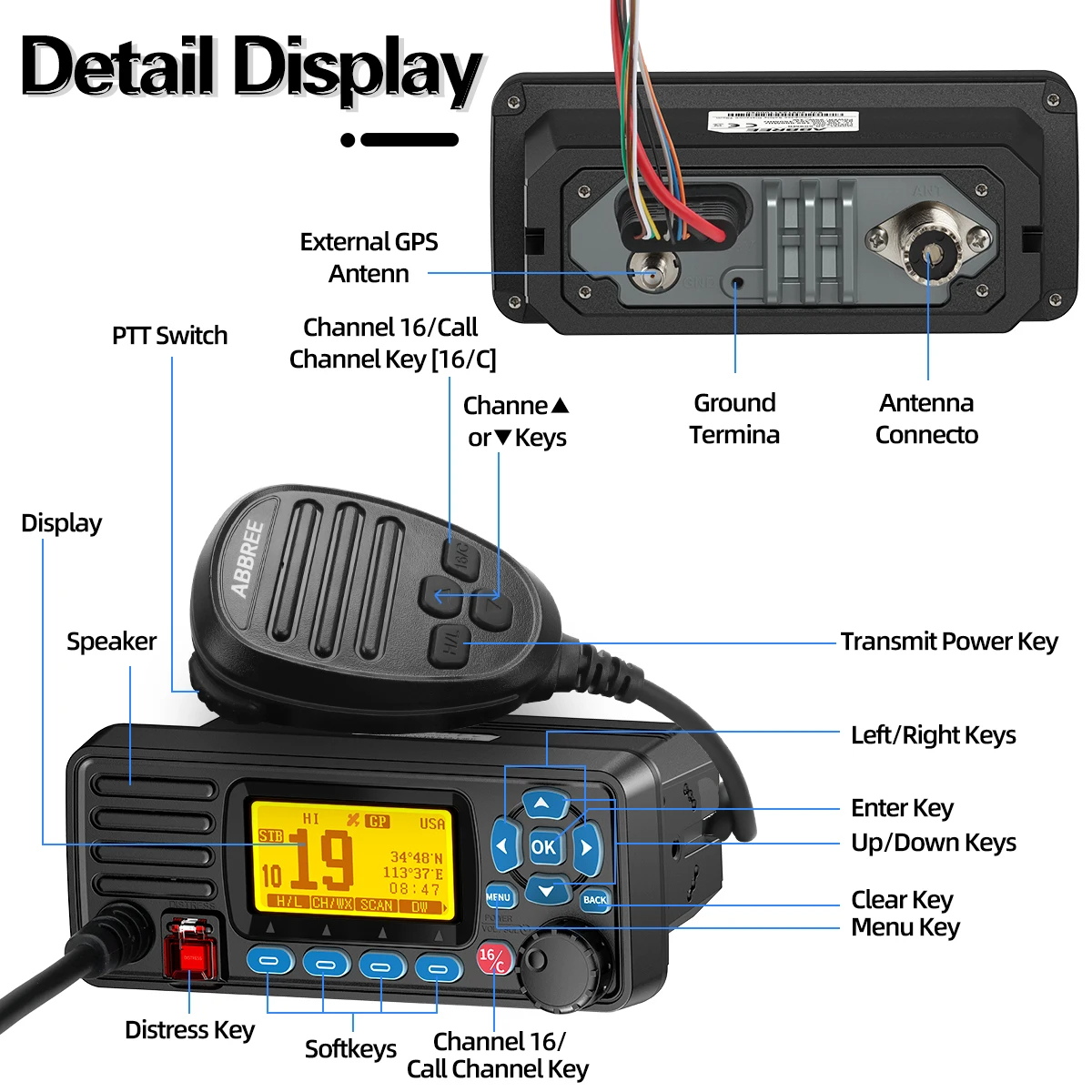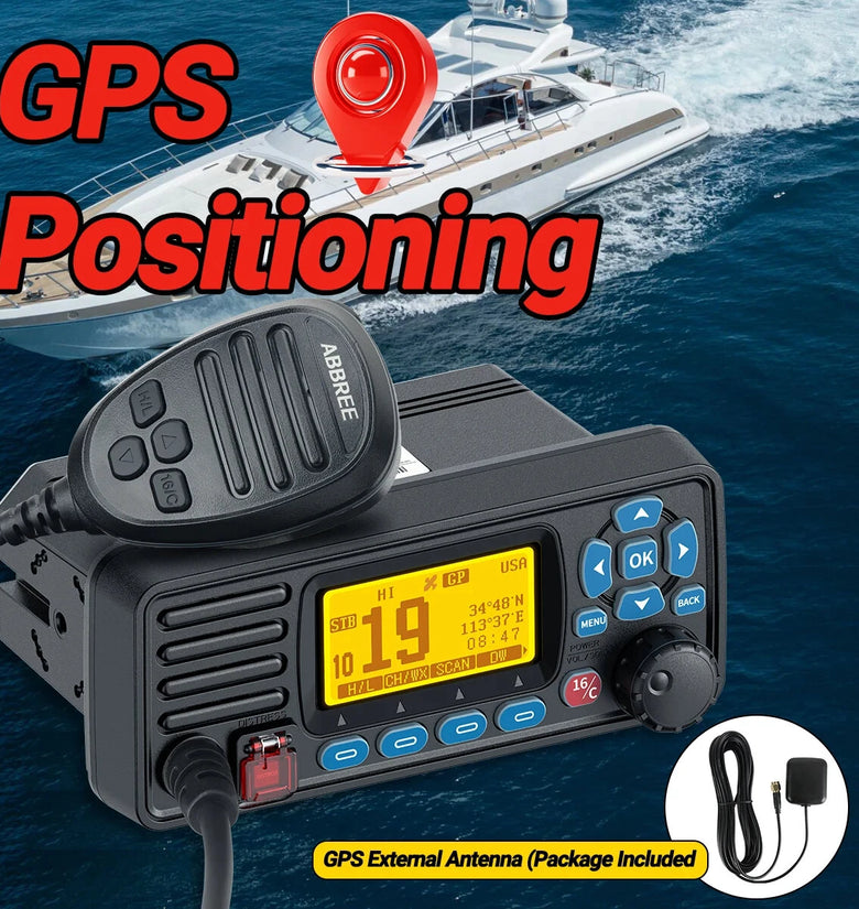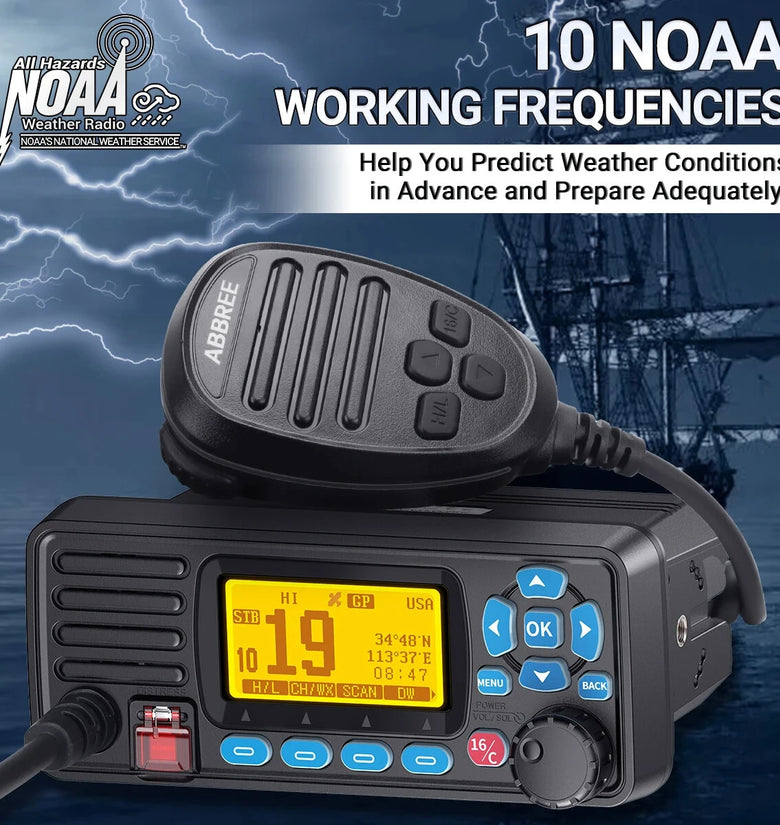 • ABBREE AR-509MG VHF Marine Radio Waterproof IP67 25W Built-in GPS NOAA Weather Alerts DSC Call USA INT CAN Marine Channels
