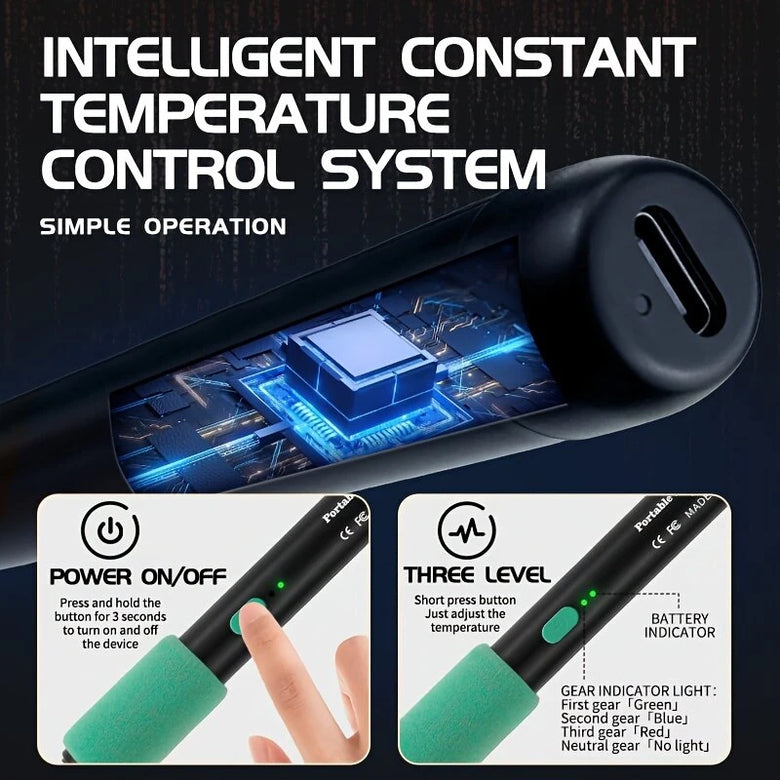 • Adjustable USB Rechargeable Soldering Iron Kit with Three Tips for Home Appliance Repair Jewelry Making and DIY Projects Non-slip Grip and Storage Box