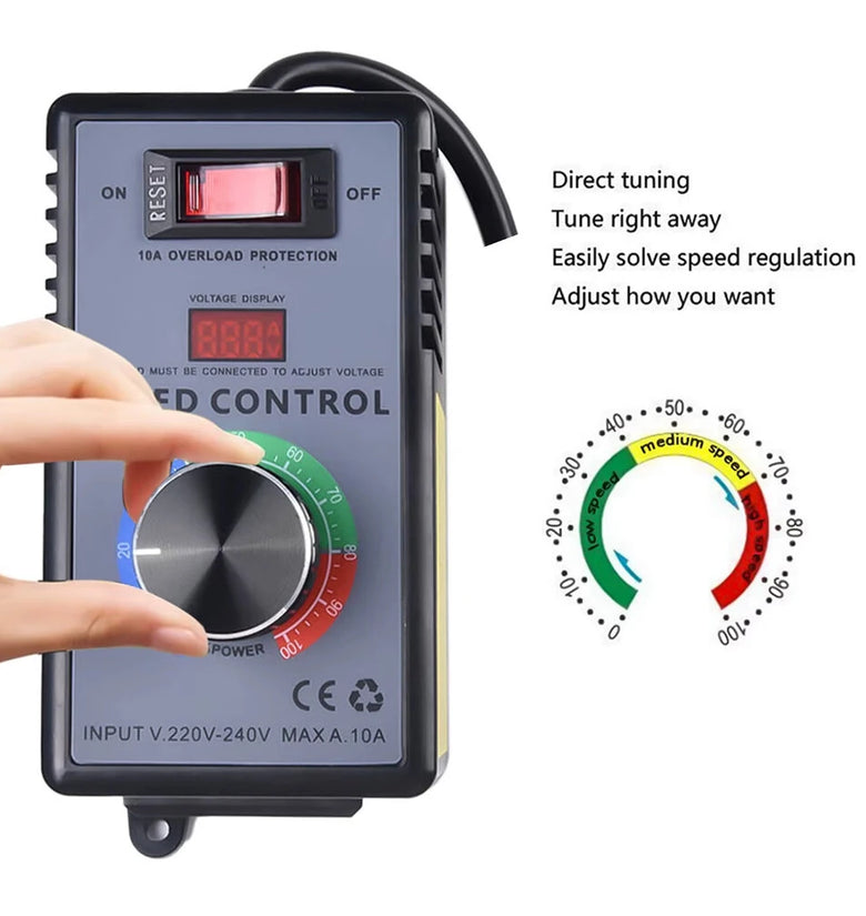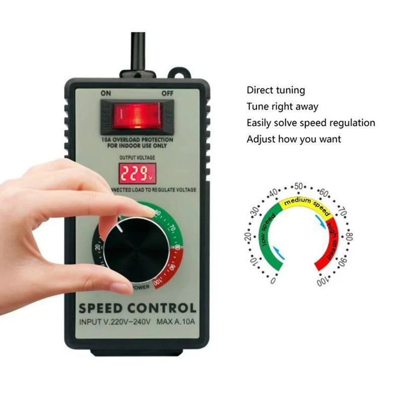 Features:1.Wide Compatibility: Supports speed adjustment for fans, brushed motors, and tools without speed gears. Can also adjust temperature on electric stoves, heating rods, and similar appliances. Does not support devices with circuit board or advanced electronics.