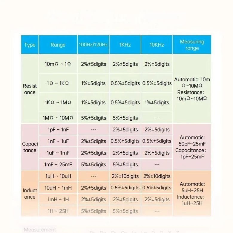 Test Frequency Options: 100Hz, 120Hz, 1kHz, 10kHz