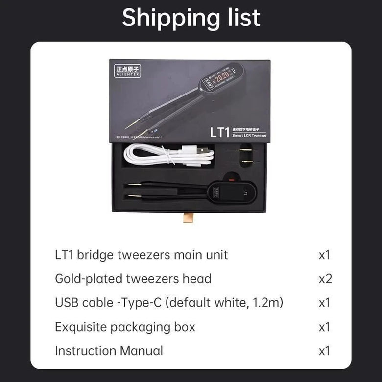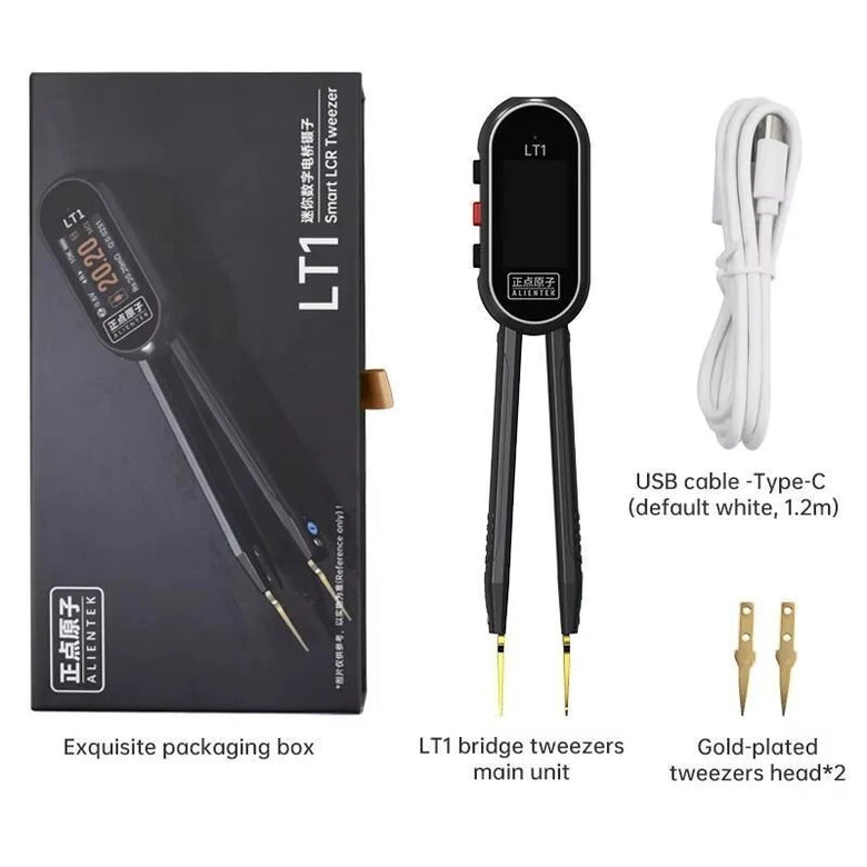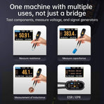 The LT1 is an all-in-one electronic testing tool capable of measuring resistance, capacitance, inductance, voltage, continuity, and diode properties. With adjustable test voltage levels ranging from 0.1V to 1.0Vrms and frequency options between 100Hz and 10kHz, it offers precise and customizable testing features. The 1.14-inch IPS HD screen ensures clear and accurate display of results. Compact and lightweight at just 43 grams, the tester is ideal for saving workspace and portability. Its intelligent recognition system automatically detects components and analyzes their models, simplifying the testing process efficiently.
