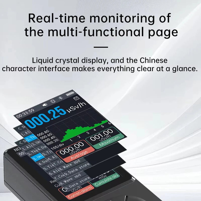 Efficiently detects beta (β), gamma (γ), and X-rays using a high-quality Geiger-Müller counter tube, offering precise readings across various radiation types for diverse applications.