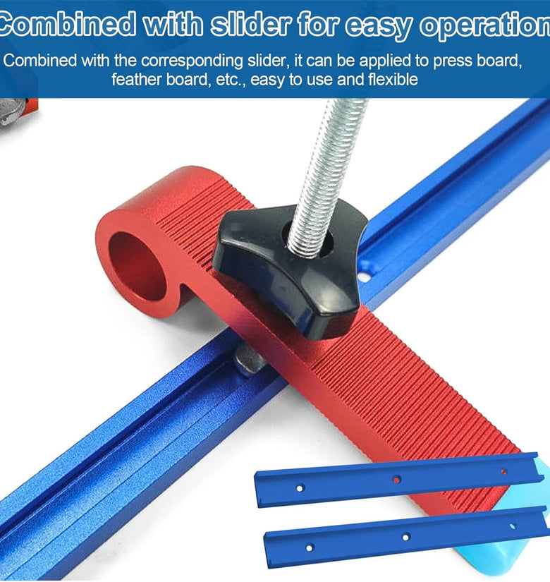 • Aluminum Alloy T-Track 400mm Blue with Self Tapping Screws M8 Handles M8/M6 T-Track Sliding Nuts for Woodworking Workbench Saw