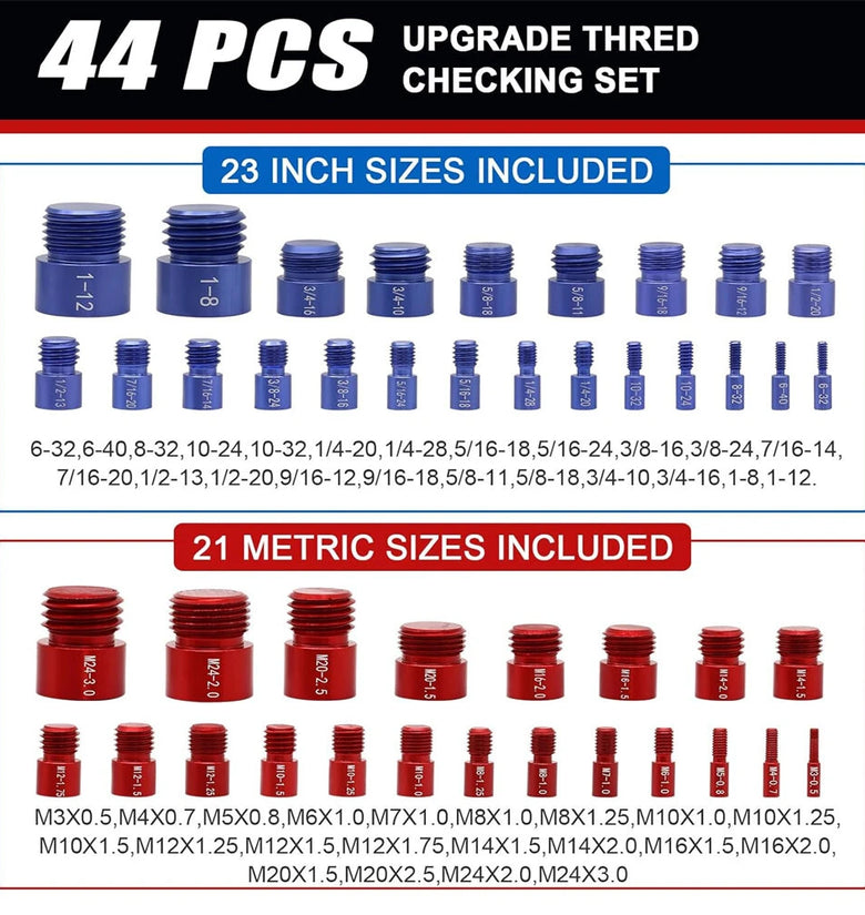 • Aluminum Alloy Thread Checker Set SAE and Metric 26-Piece and 44-Piece Portable Carrying Case for Mechanics and DIY Enthusiasts