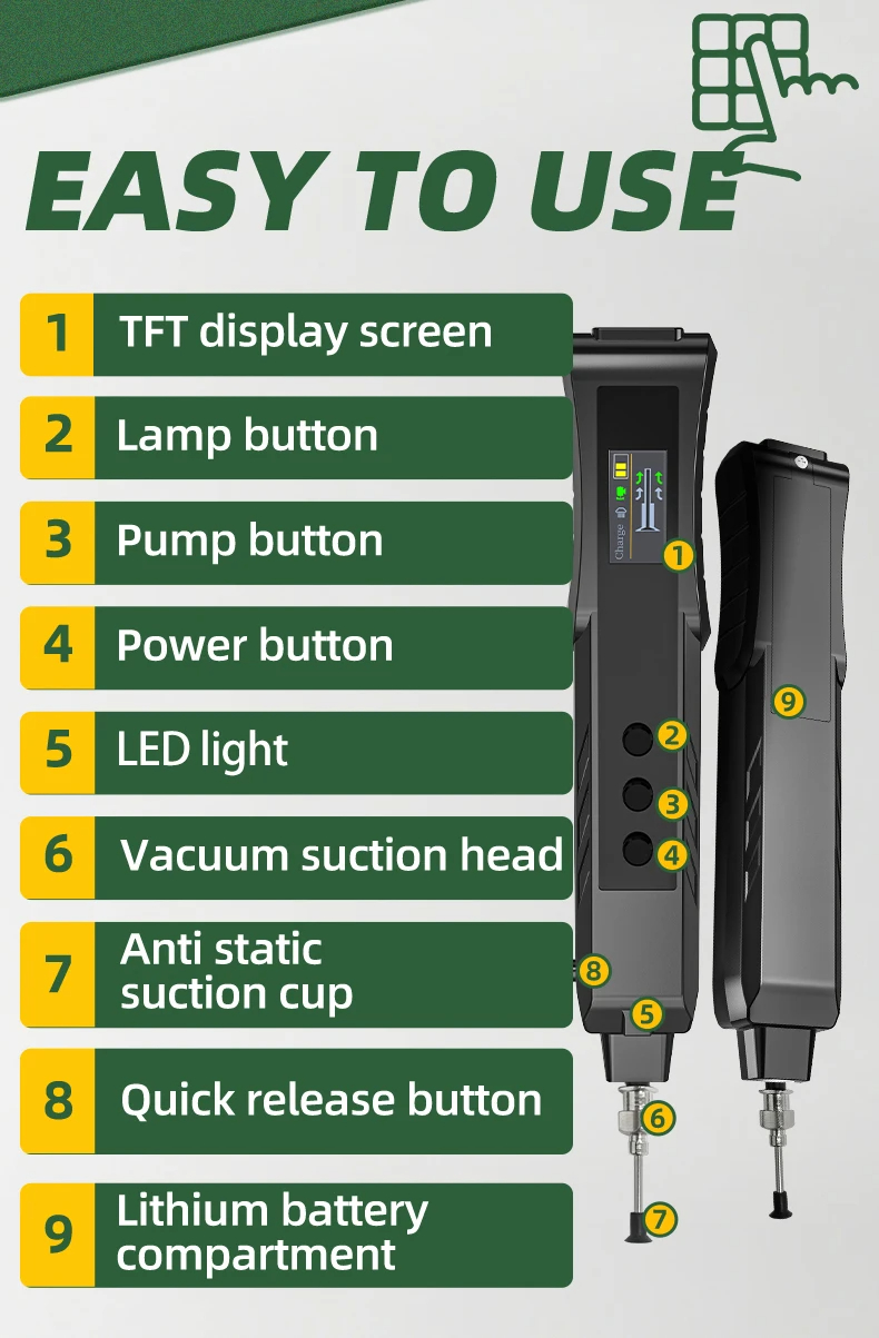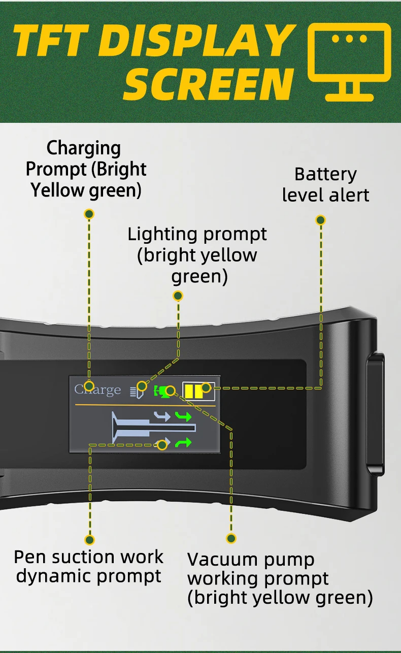 1.Efficient Vacuum Technology: Equipped with a powerful mini vacuum pump supporting lifting capacities up to 140 g without any external tubing, ensuring smooth operation for various tasks.