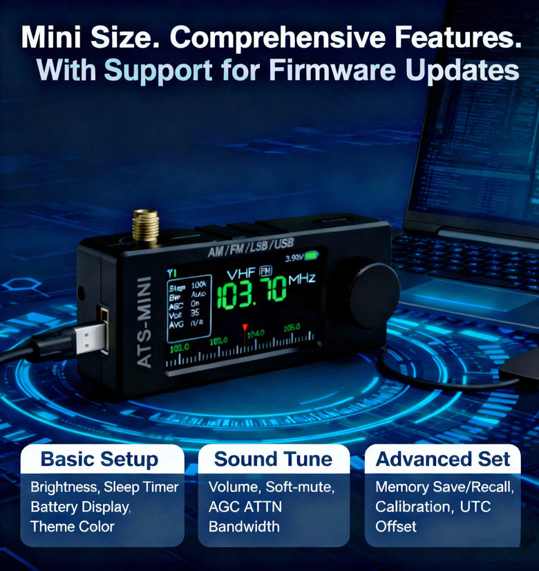Powered by the ESP32-S3 and SI4732 DSP chip, this radio supports multiple modes including AM, FM, LSB, and USB, enabling high-precision reception across LW, MW, SW, HFand VHF bands.