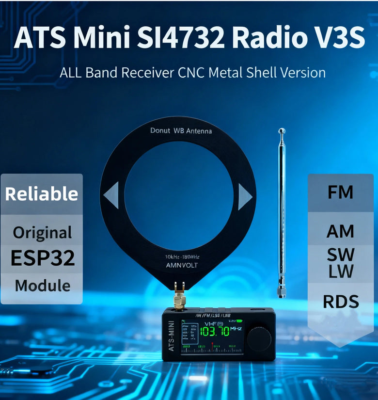 • AMNVOLT V3S ATS Mini SI4732 Radio All Band Receiver CNC Metal DSP AM FM SSB LSB USB Hi-Z Circuit