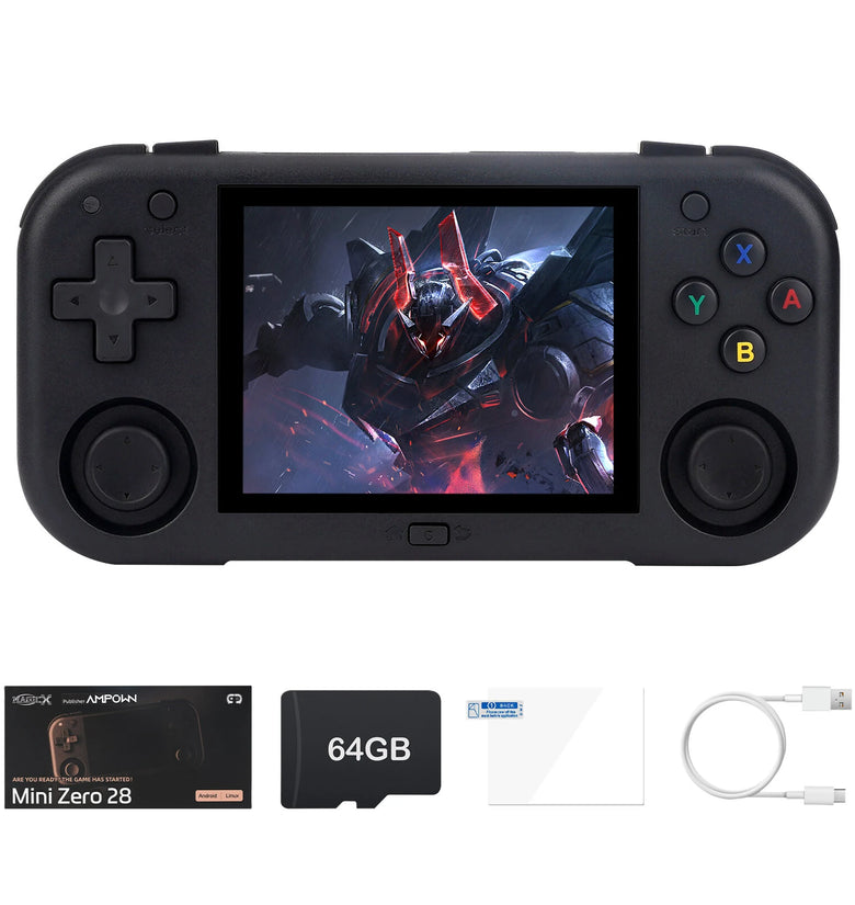• AMPOWN MINI ZERO 28 64G Retro Handheld Gaming Console 2.8 Inch IPS Android System Built-in 10809 Games 30+ Emulators 2900mAh Lightweight Portable Pocket Video Game Console