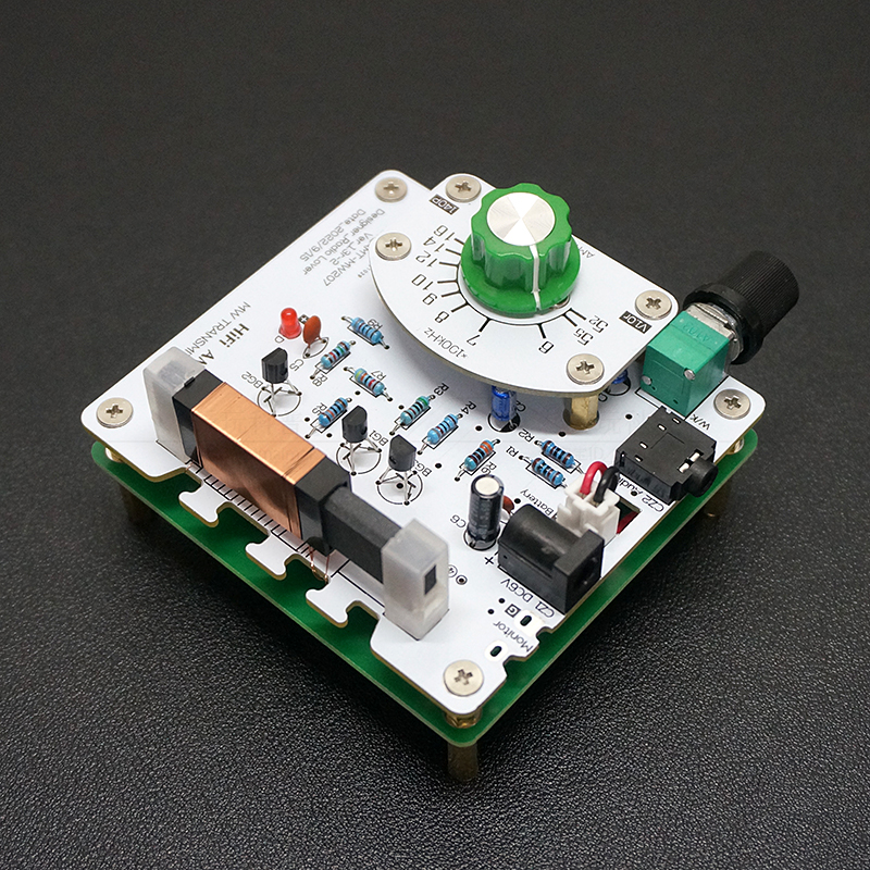 - V1.3 is a modified version of V1.2, which uses a beautiful flat magnetic rod and adds a dial. The calibration scheme comes from the radio with 223P variable capacitor. It is tested that there is a slight error. Players with high requirements can use digital display radio to correct.