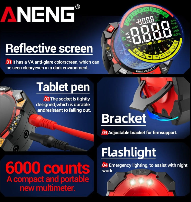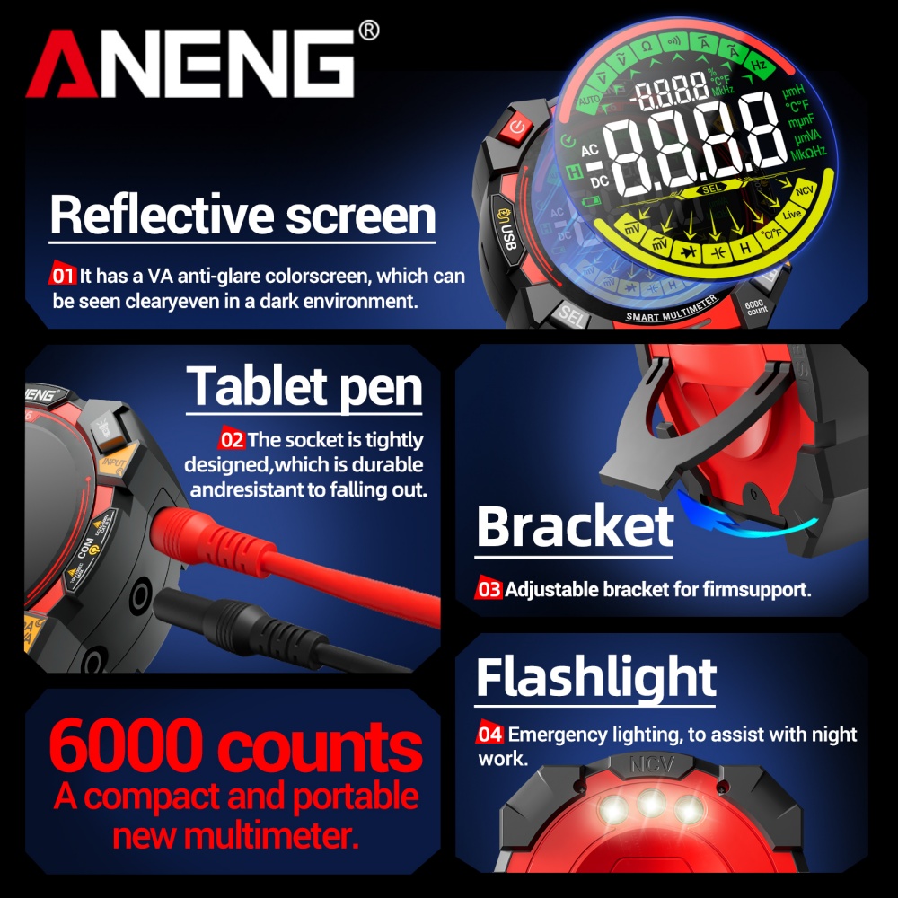 1. High-Precision 6000-Count Display: Offers precise readings for voltage, current, resistance, and other parameters, making it ideal for professional and household tasks.