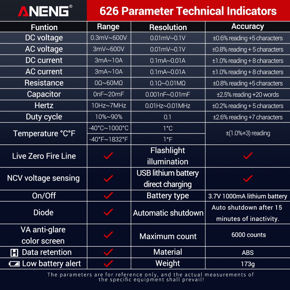 1 x ANENG 626 Pro Digital Multimeter Kit