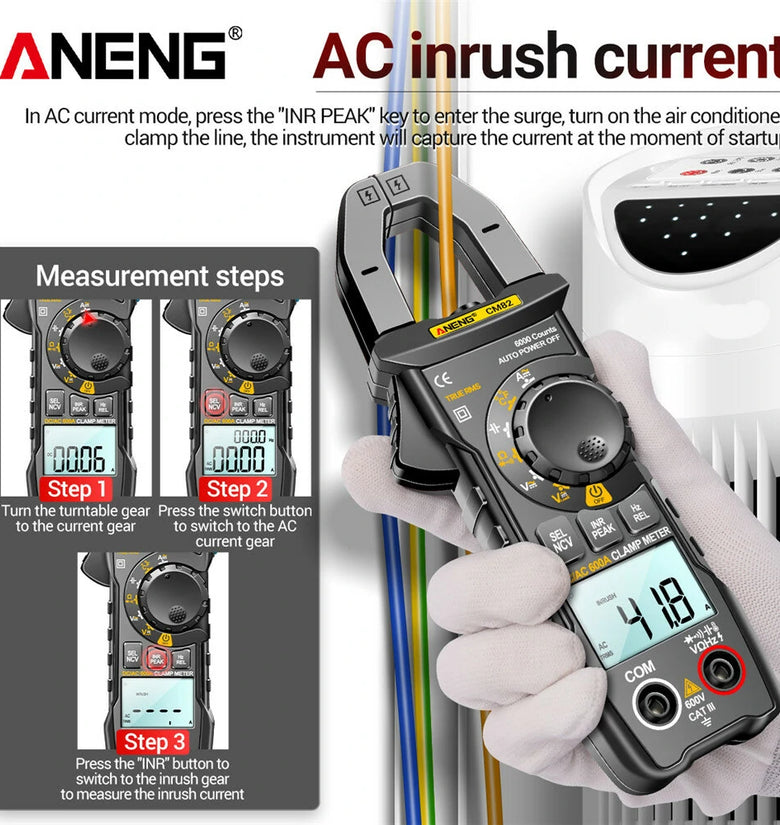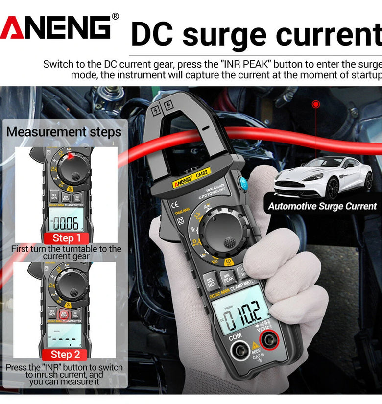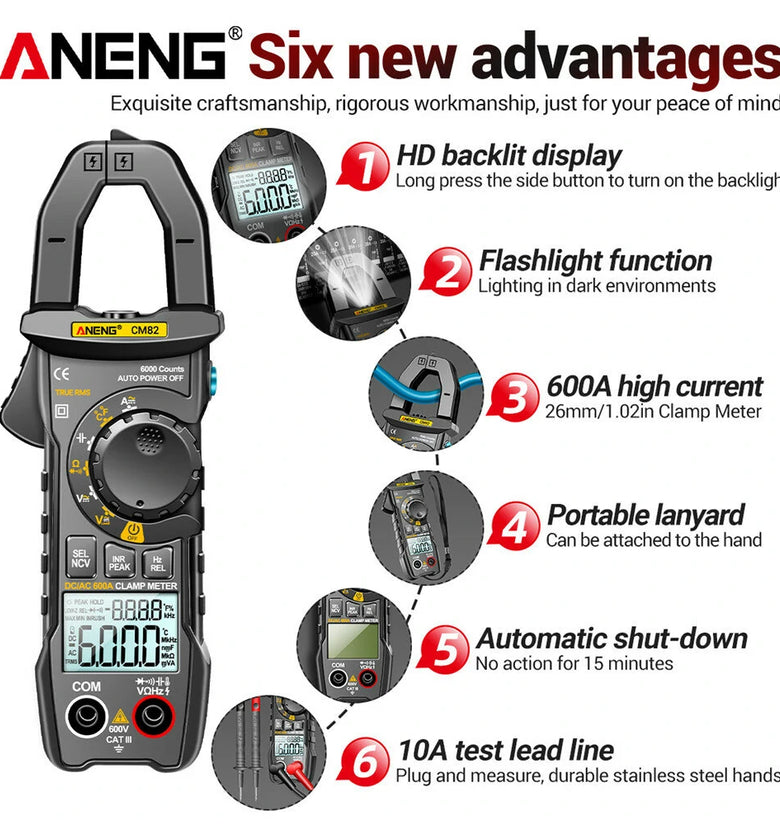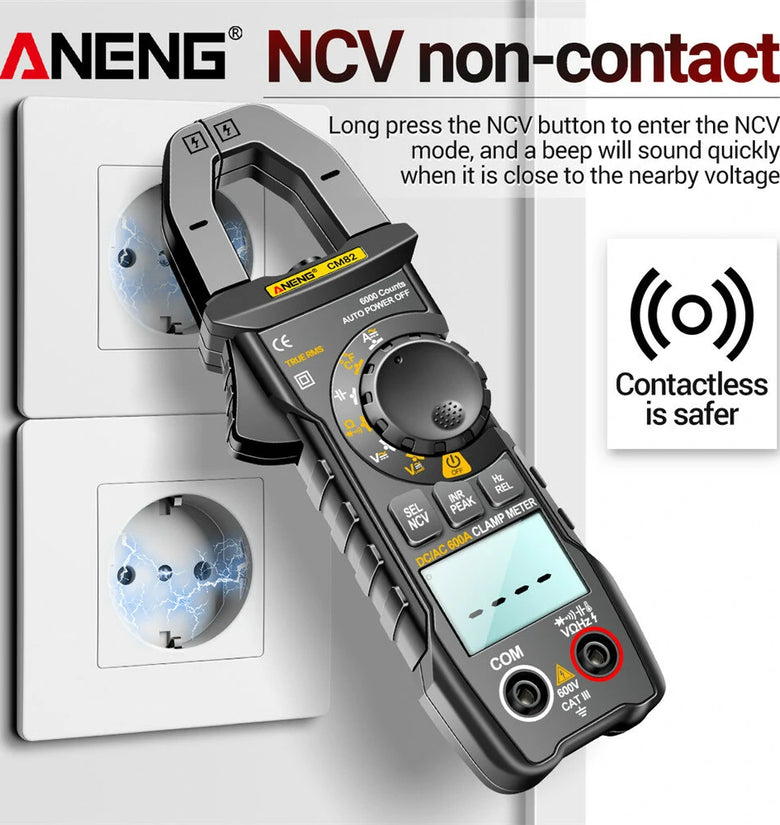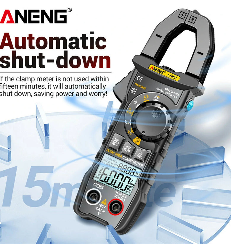 • ANENG CM82 Clamp Meter DC/AC 600A Current Voltage 6000 Counts Multimeter Ammeter Tester Car Amp Hz Capacitance NCV Ohm Test