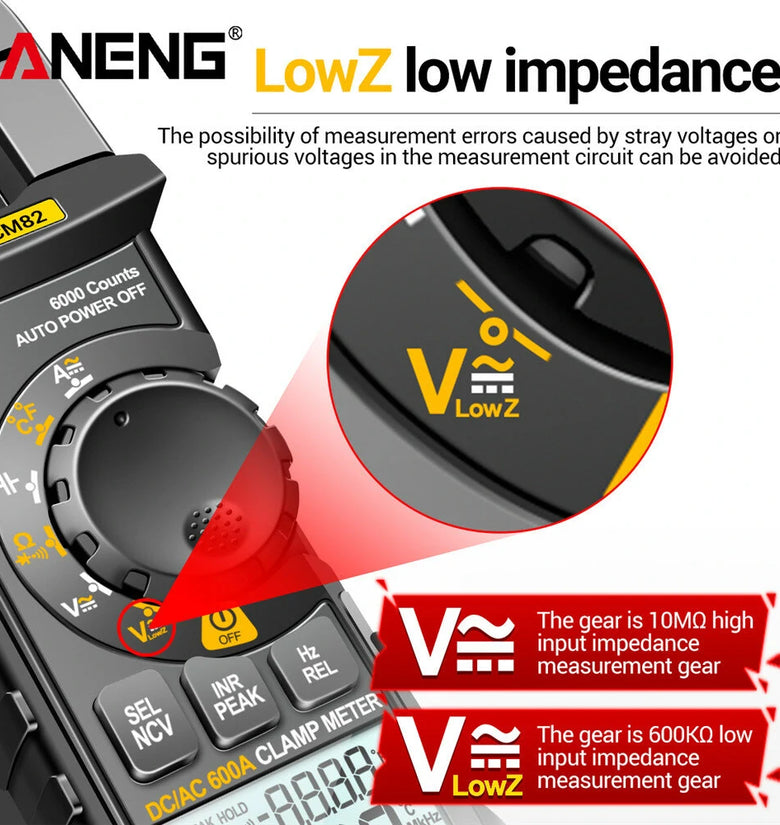 ANENG CM82 Clamp Meter DC/AC 600A Current Voltage 6000 Counts Multimeter Ammeter Tester Car Amp Hz Capacitance NCV Ohm Test