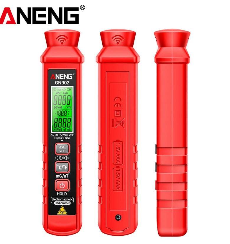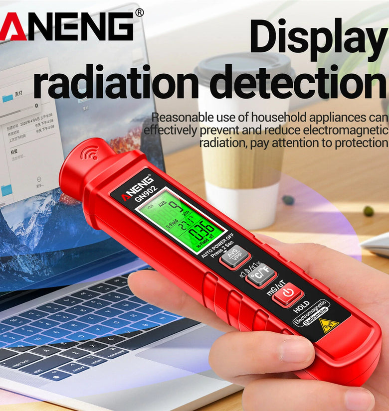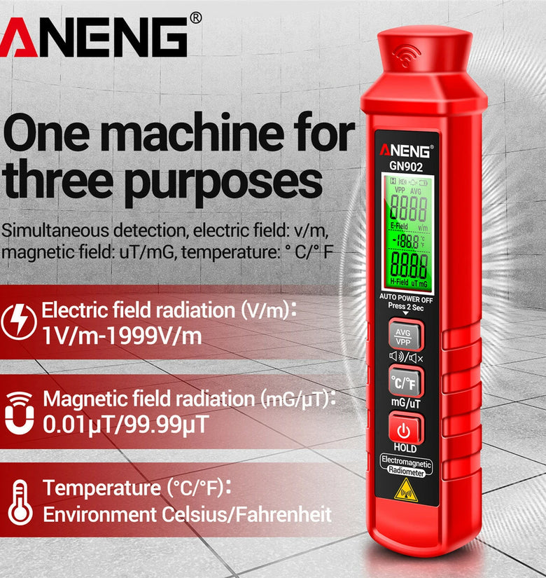 • ANENG GN902 Electromagnetic Radiation Tester 3-in-1 Electric Field Magnetic Field Temperature Detection 5Hz-3500MHz Safety Alarm LCD Display Radiation Monitoring
