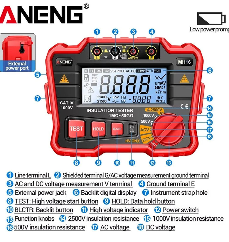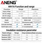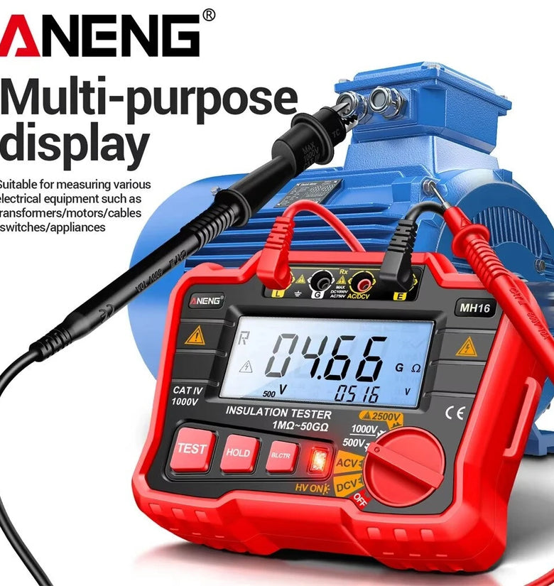 1. Multifunctional Testing: Measures DC and AC voltage, resistance, and insulation resistance for comprehensive analysis.