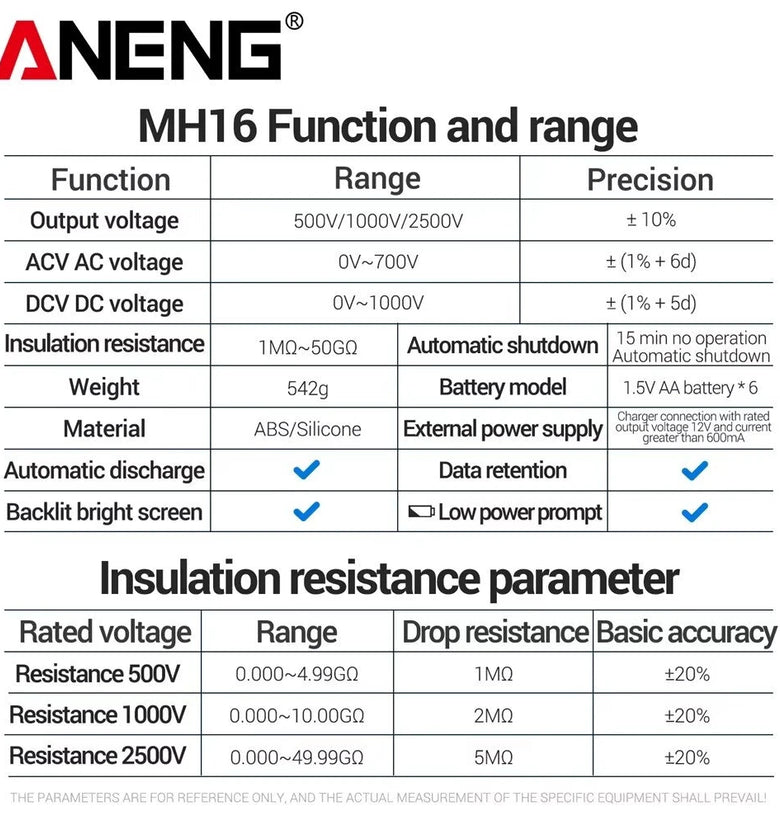 - Insulation Resistance Range: 1MΩ - 50GΩ