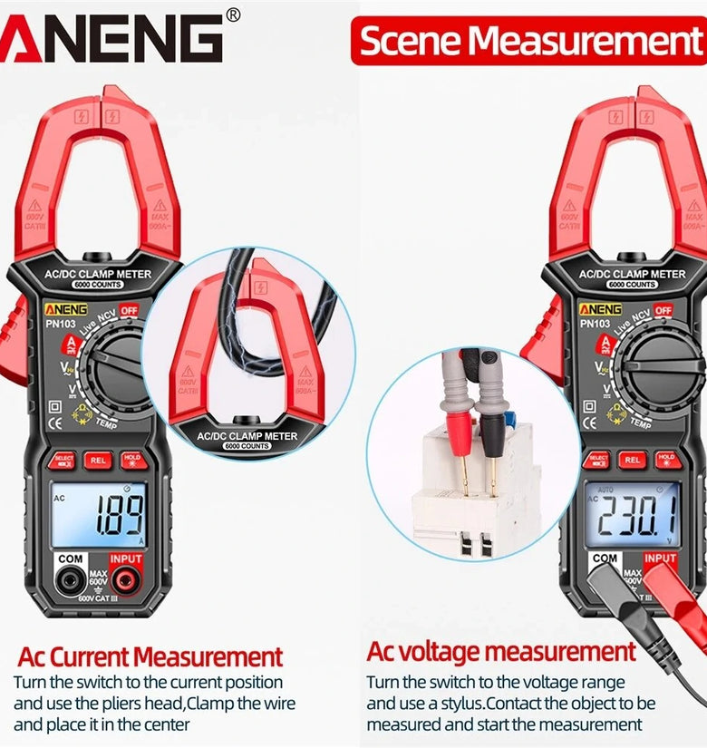 • ANENG PN103 Digital Clamp Meter AC/DC Current Professional Multimeter 6000 Counts True RMS Tester Meters Voltmeter Auto Range