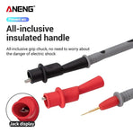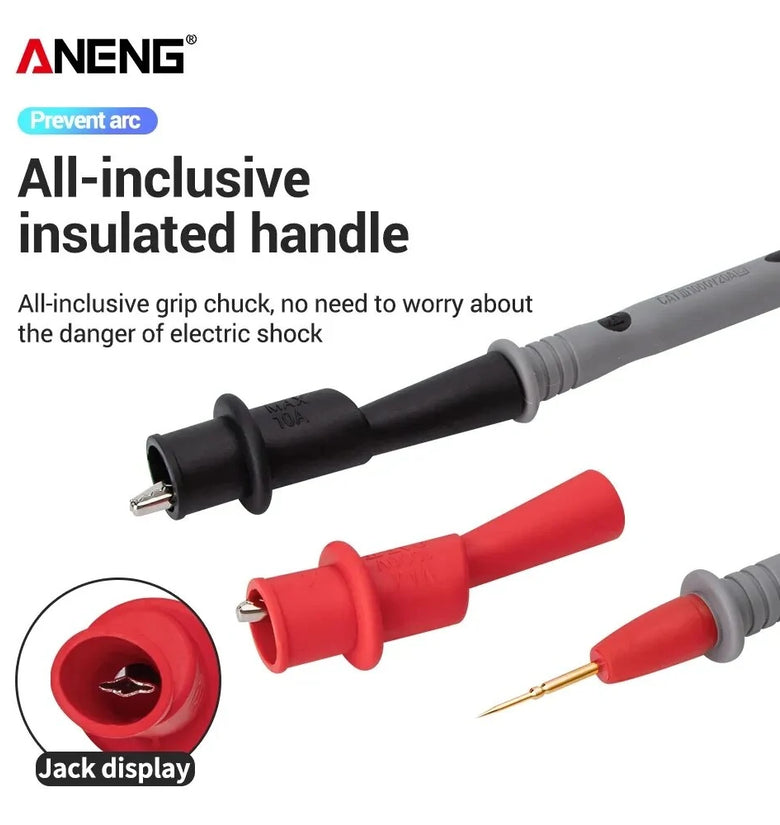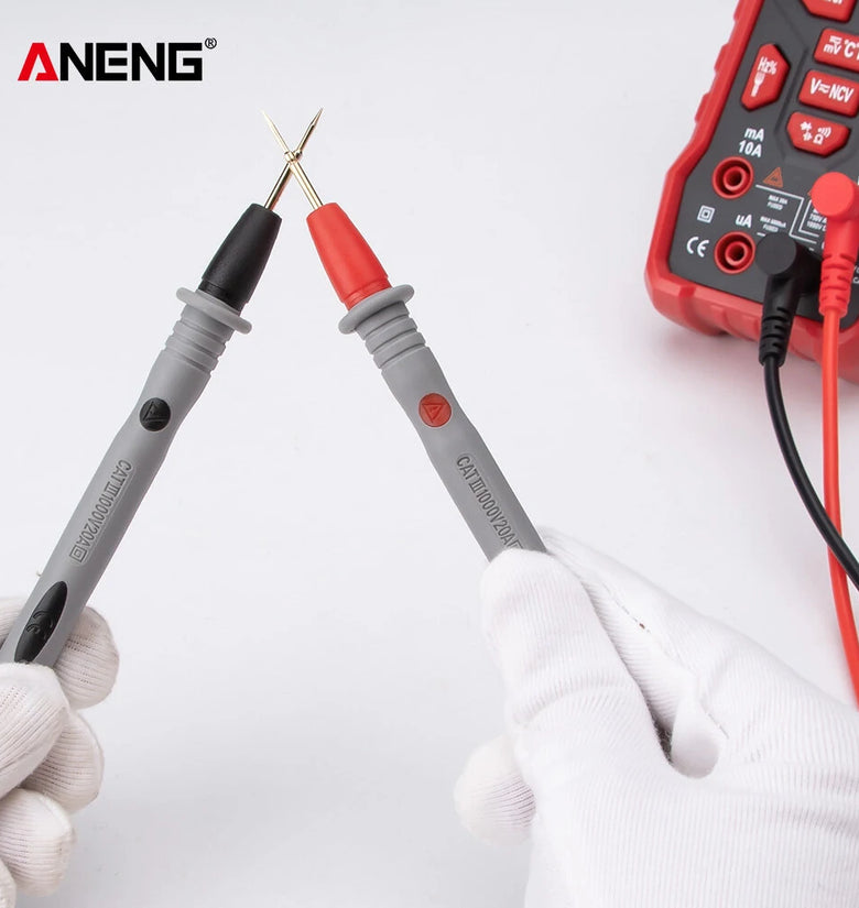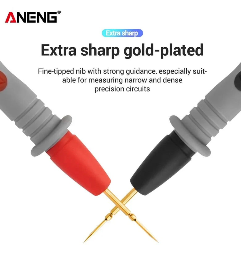 Features:Premium Quality: The lead features the 100% brand new high-quality color of black and red to be suitable for multimeter.Durable Design: The lead features the gold-plated copper. And the lead is high quality, which can be used for a long time.Easy to Use: The lead features the universal multimeter plug for easy to use.Practical in Use: The lead features the good flame retardant effect, which can maintain the flexibility of the test line under severe cold conditions.Fine Quality: The lead can be used for excellent electrical testing in the field of school physics laboratories. And it can effectively reduce the internal resistance of the test lead.Specification:Bus length: 108cmMaterial: Silicone/BrassLine length: 93cmMaximum voltage: 1000VSpecial tip diameter: 0.3mmMaximum current: 20AFeatures: Special tip suitable for measuring very small IC pin flapsPackage Includes:2 x Multimeter ProbesNote:There might be a bit of color distortions due to different computer resolutions.There might be a slight error due to different hand measurements.