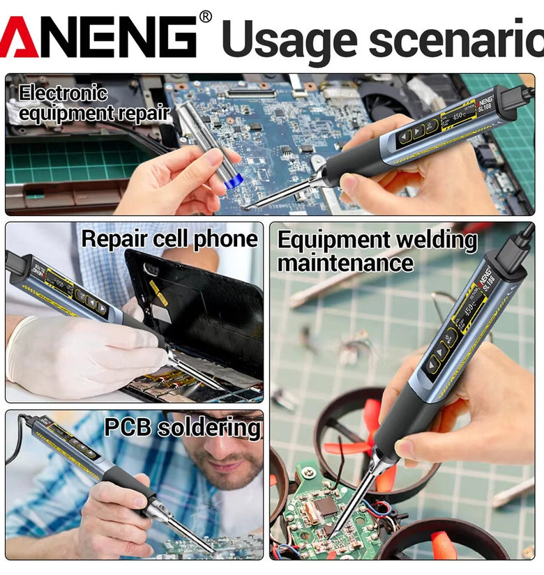 Equipped with an OLED display screen, the soldering iron provides clear, easy-to-read information on temperature settings and operational status.