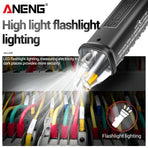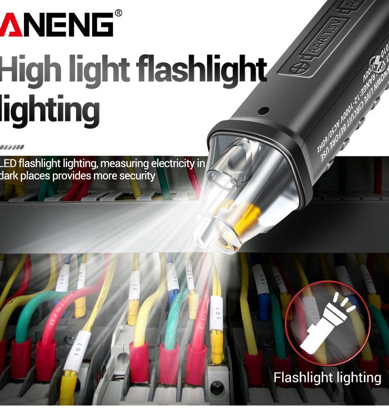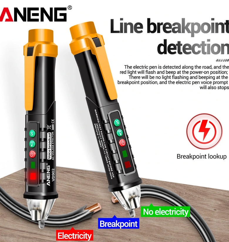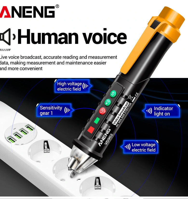 The tester indicates the detected high-voltage or low-voltage electric field through voice broadcast, alarm sounds of different frequencies and LED lights of different colors |