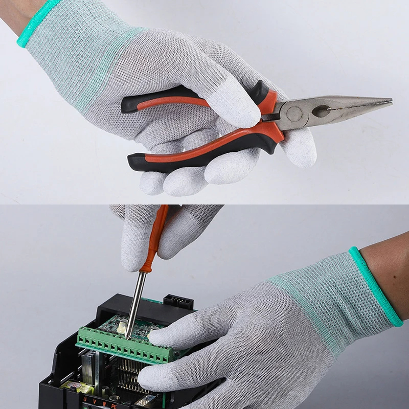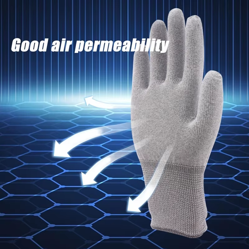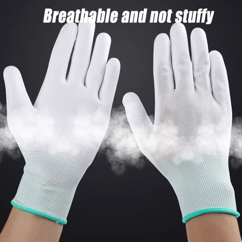 • Anti Static Labor Gloves PU Coated Palm Nylon Fiber Breathable Non Slip Gloves High Elasticity Work Gloves for Assembly Inspection