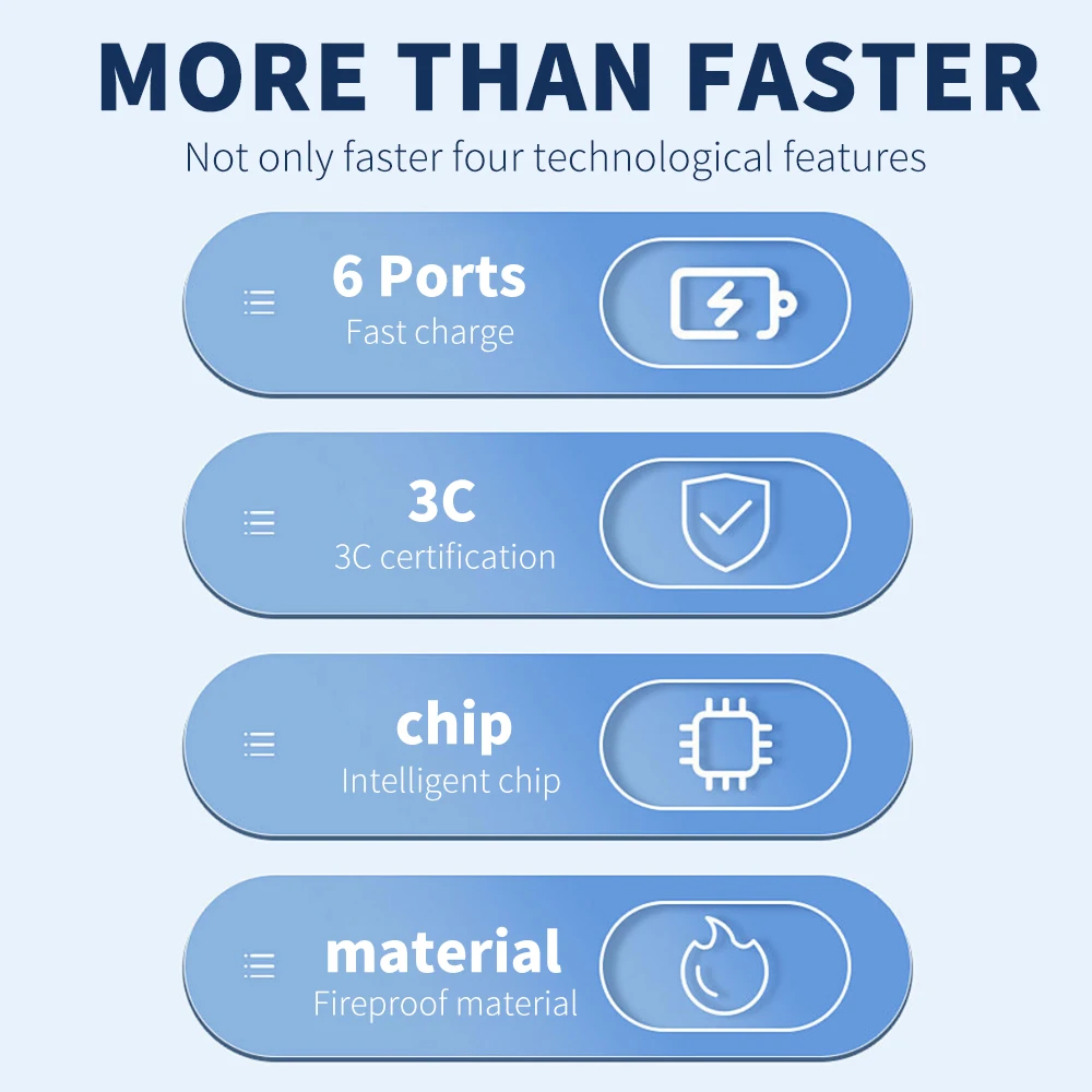 • AR-880 3.1A 65W 6-Port USB PD Charger 4USB-A+2USB-C Fast Charging Wall Charger Adapter EU Plug for iPhone 15 14 13 Pro for Huawei Nova Flip for Samsung Galaxy Z Fold 6 for Xiaomi MIX Fold4
