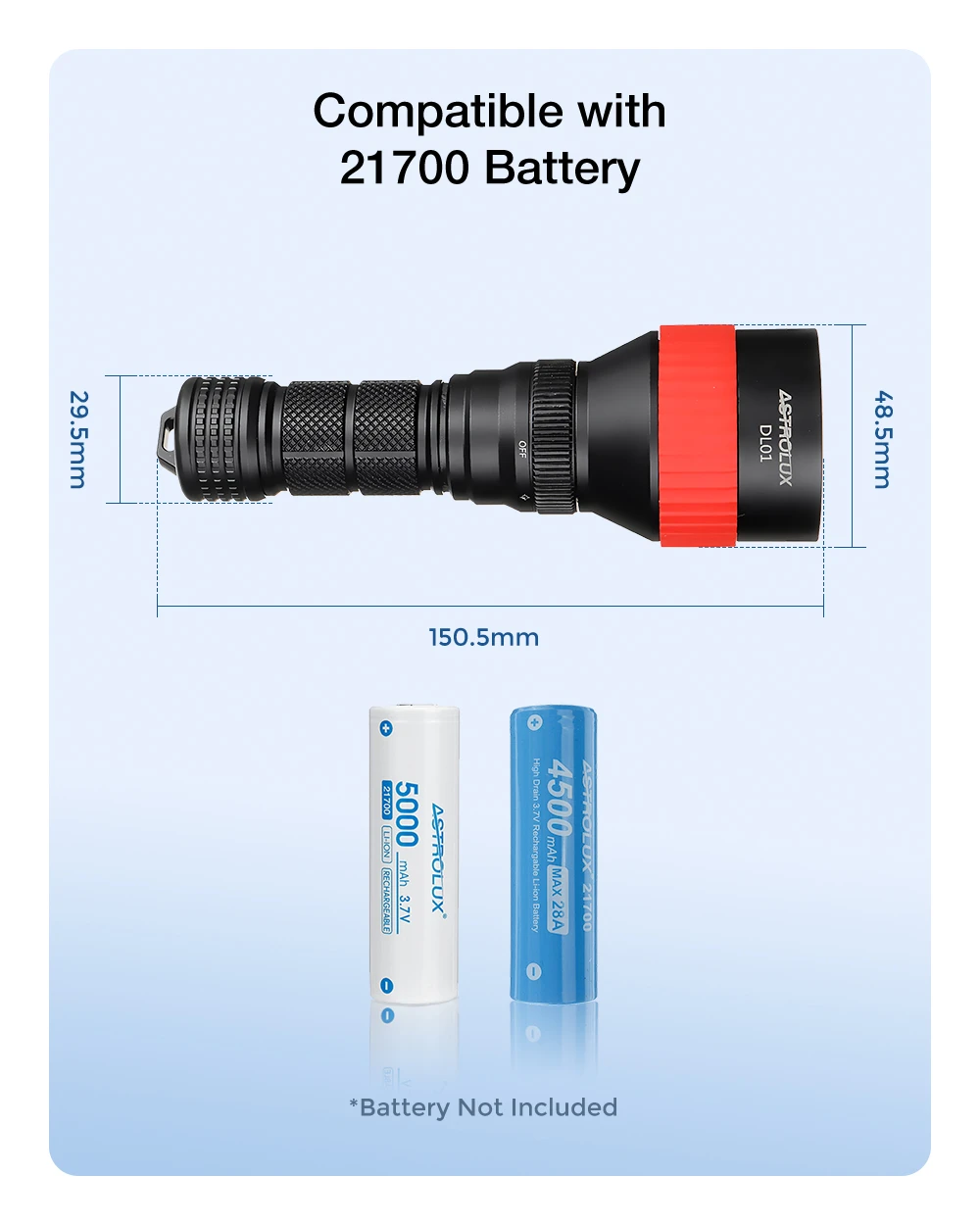 1 * 21700 Battery(Not included) |