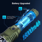 TM03 'Flood & Throw Dominator' Key Features:-6,000 Lumen Wide-Angle Flood – Lights up entire trails/campsites like daylight-Ultra-Portable Design – Fits easily in backpacks (8.4” compact body), perfect for EDC & hiking-15-Day Survival Runtime – Moonlight mode lasts 2 weeks-Weatherproof Armor – IPX6-rated aluminum body survives rain and mud-Multi-Use Photography Tool – Includes tripod mount for night photography/emergency area lighting