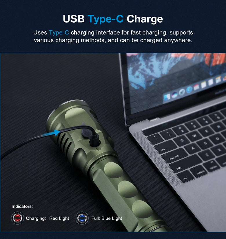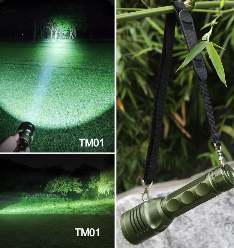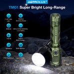 1. Perfect for professional rescuers and outdoor enthusiasts with high long-range performance needs, the TM01 offers a 1442-meter beam via its SFT90X LED, precisely targeting distant objects during remote expeditions. 2. Built for complex environments like mountainous regions or ruin explorations, its smart temperature control guarantees stable high-brightness output without overheating, along with enduring runtime. 3. Crafted for users chasing extreme performance, it combines long-range projection with a 60° secondary flood beam, avoiding the visual constraints of pure laser flashlights.